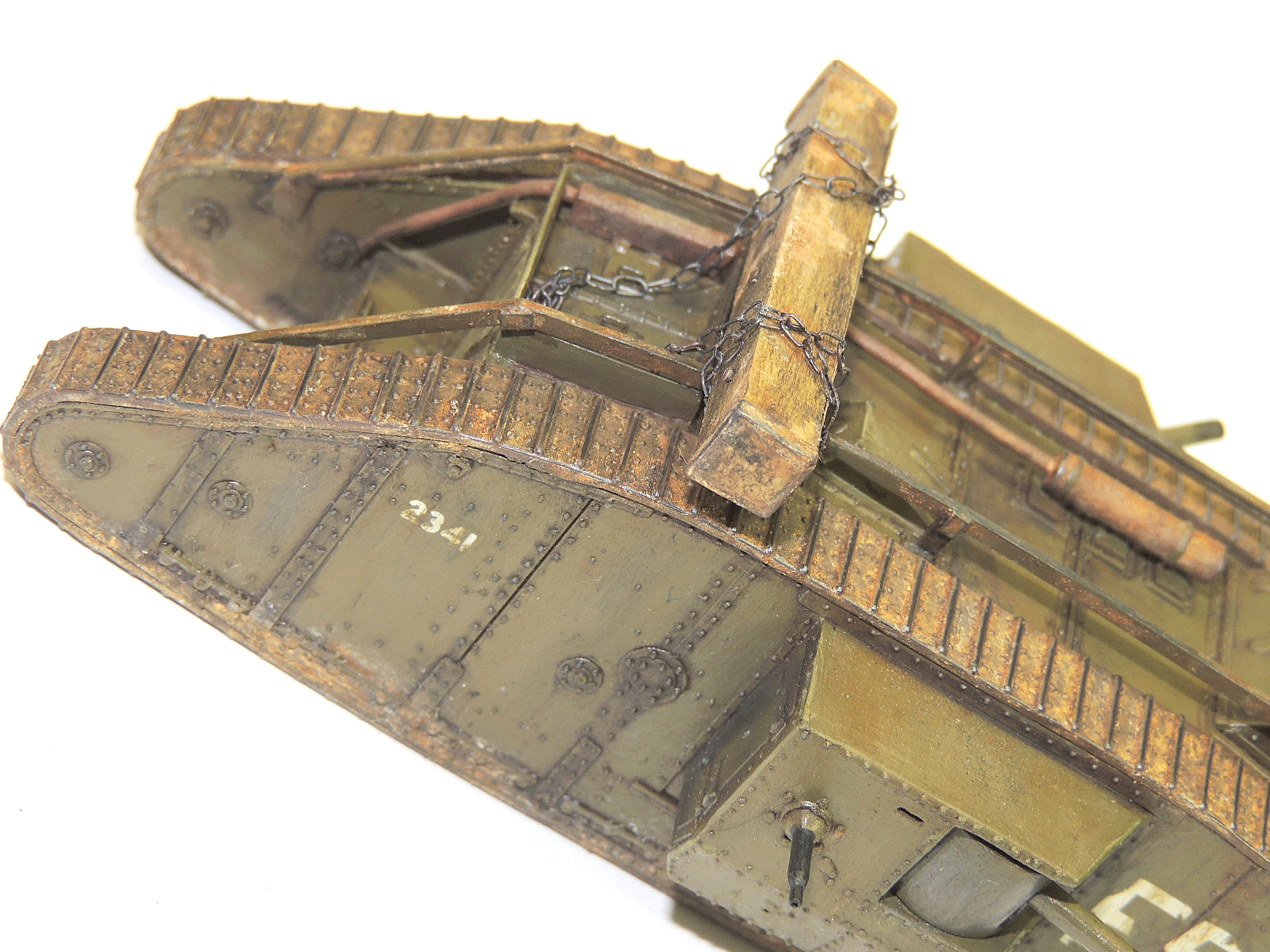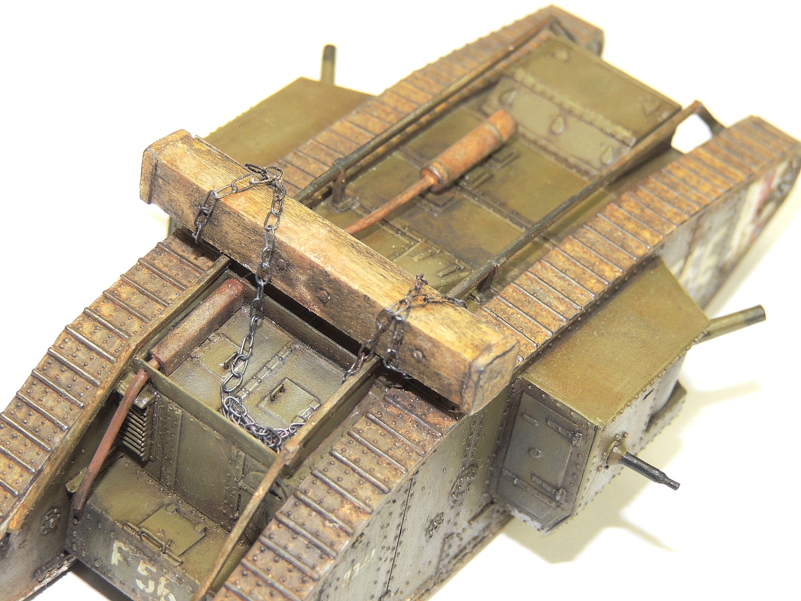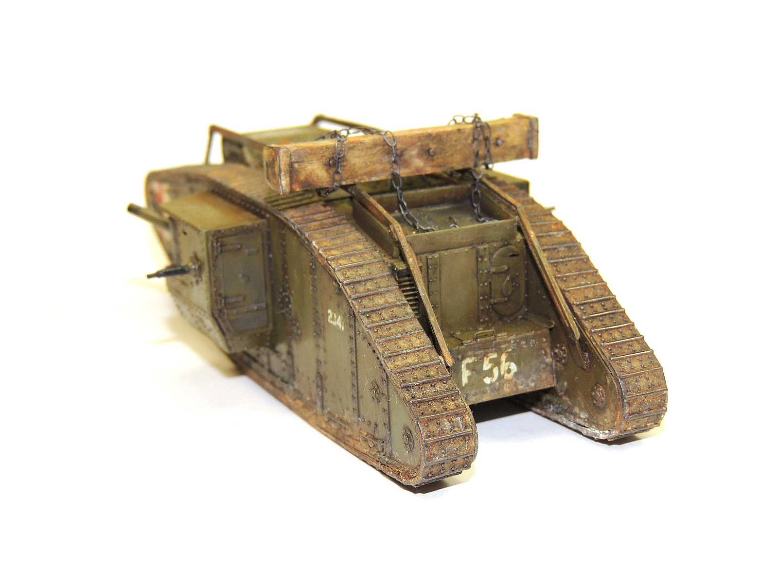 Здравствуйте всем! Выставляю свою очередную работу, на этот раз по теме Первой мировой войны. Давно хотелось иметь подобное чудо у себя в коллекции. Особенно после просмотра не так давно ретроспективы фильмов соцреализма 30-40-х годов. По модели: данное чудо уже не раз выставляли и описывали, что хотелось отметить для тех кто "впервые", небольшой геморрой с выведением гусениц по кромки наружного корпуса, кроме того производитель не верно позиционирует уголок верхних направляющих салазок, он должен идти ребром не внутрь, а наружу. От себя бревно и самодельная цепь( мастерил впервые), с отжигом, ну и так по мелочи. По большому счёту там и собирать то особо нечего.