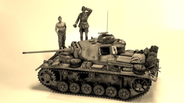 Курьез этой модели заключается в том, что фотографии прототипа реально существовавшего PzKpfwIIIAusf.LDAKс бортовым номером 1/15 я нашел после постройки модели. Почтиугадал!