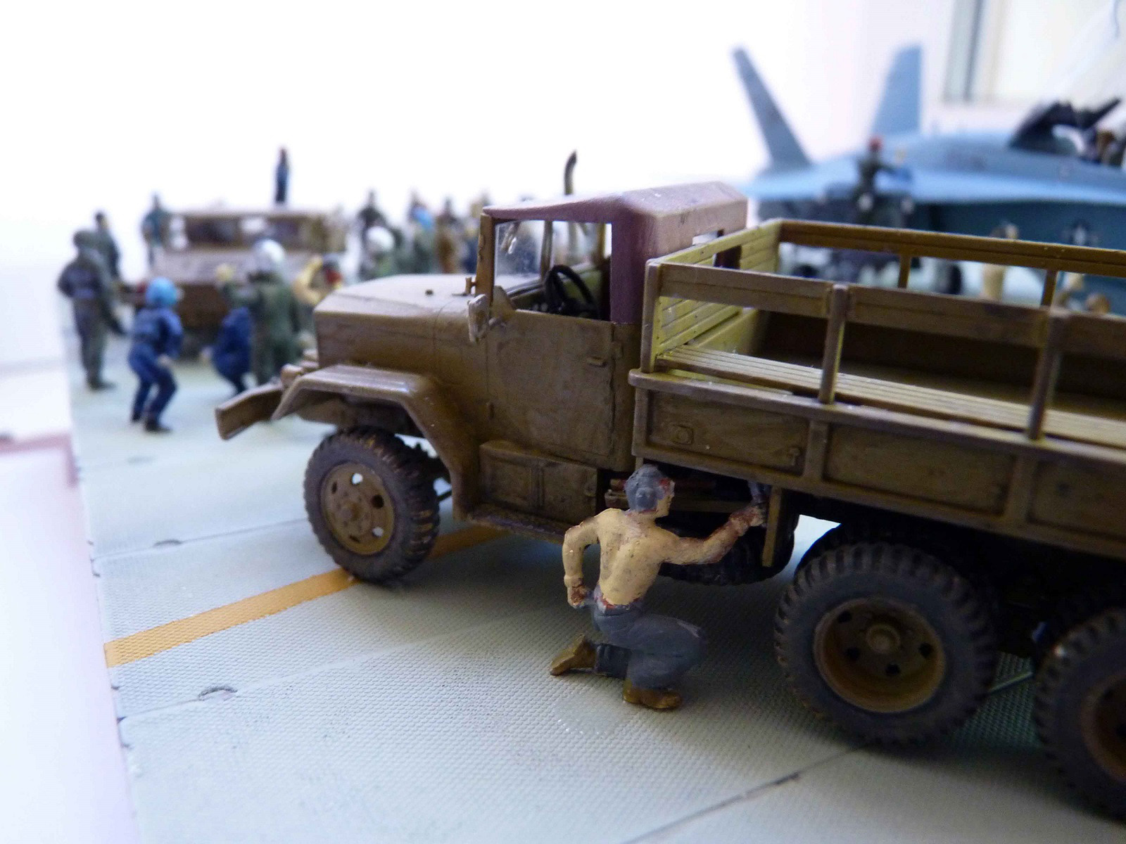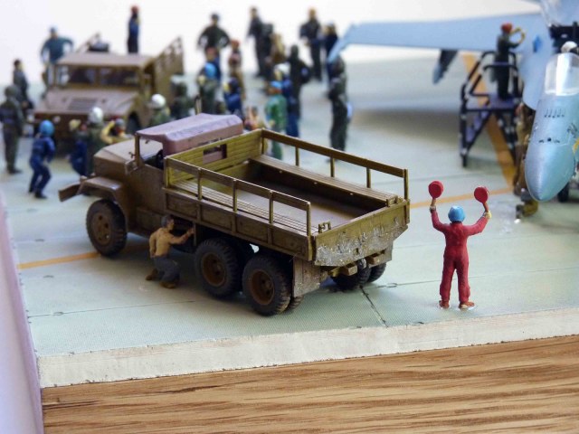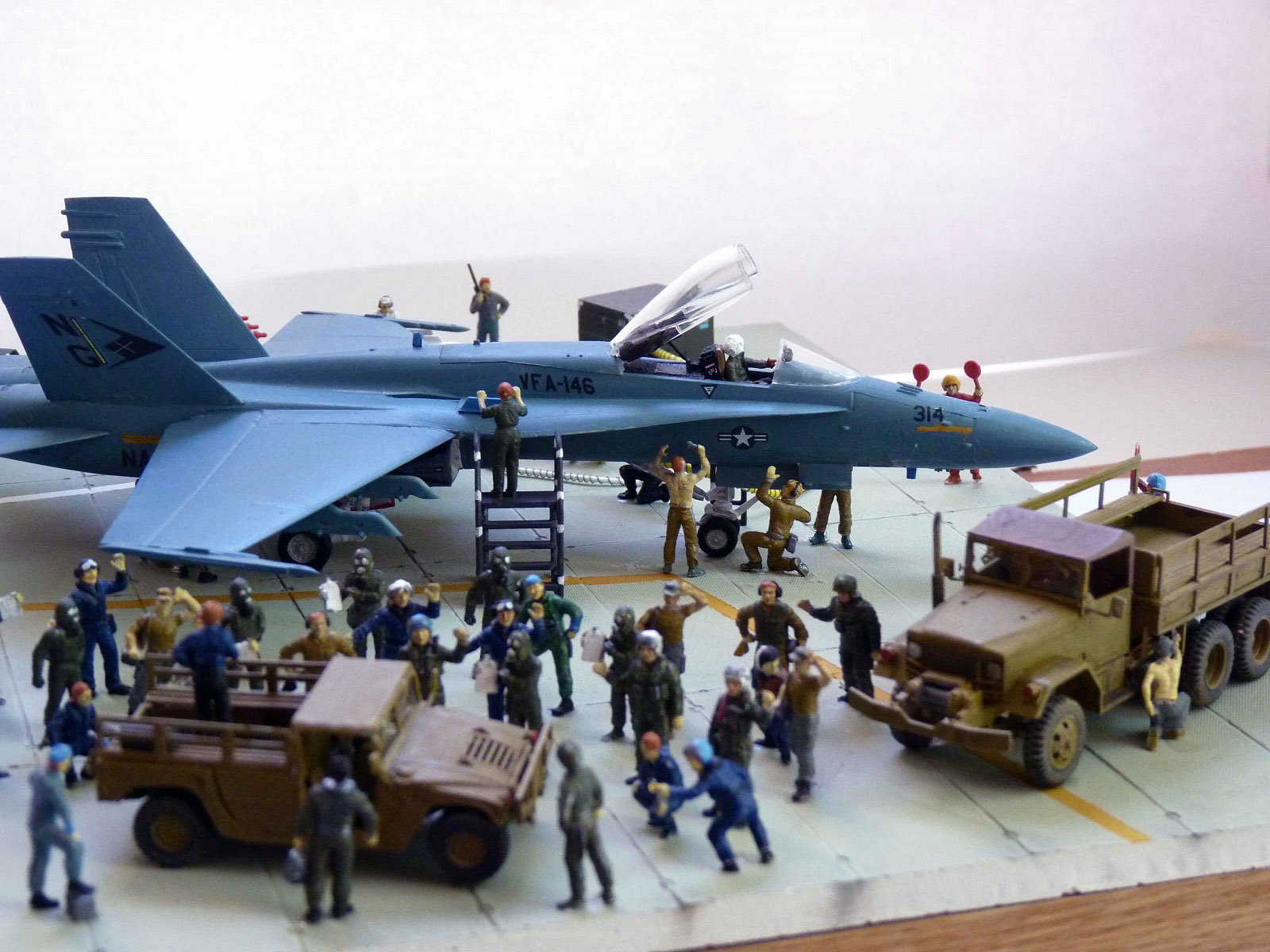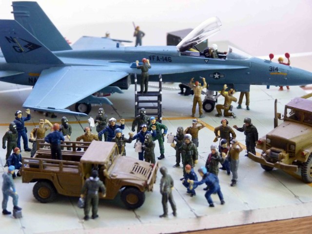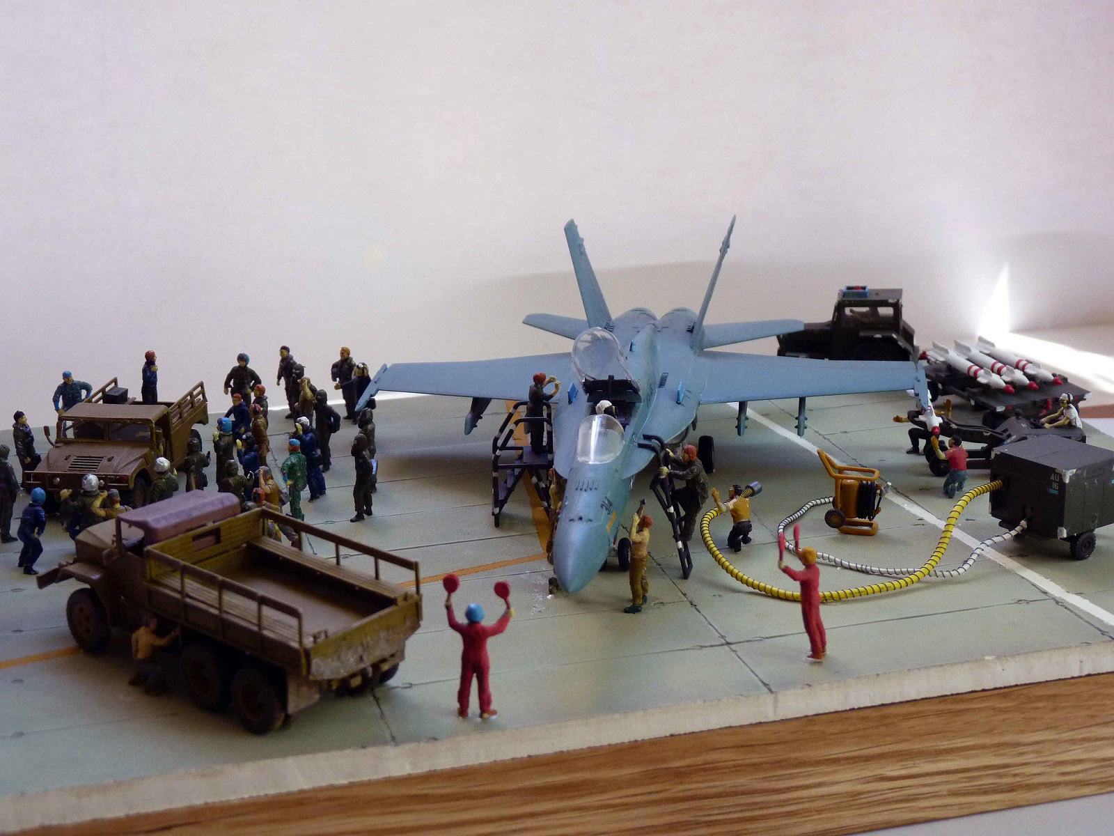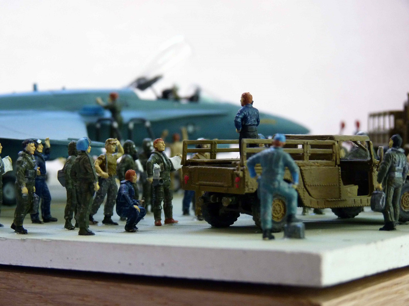 Задумка, композиция классные! Фигурки тоже понравились. Для 72-го вполне. А самолет - нет. Переплет не покрашен, да и сам как то неаккуратно собран-покрашен, тонировку опять же надо. И ракеты грубые какие-то тоже, и тележка с ними одним колесом висит в воздухе.