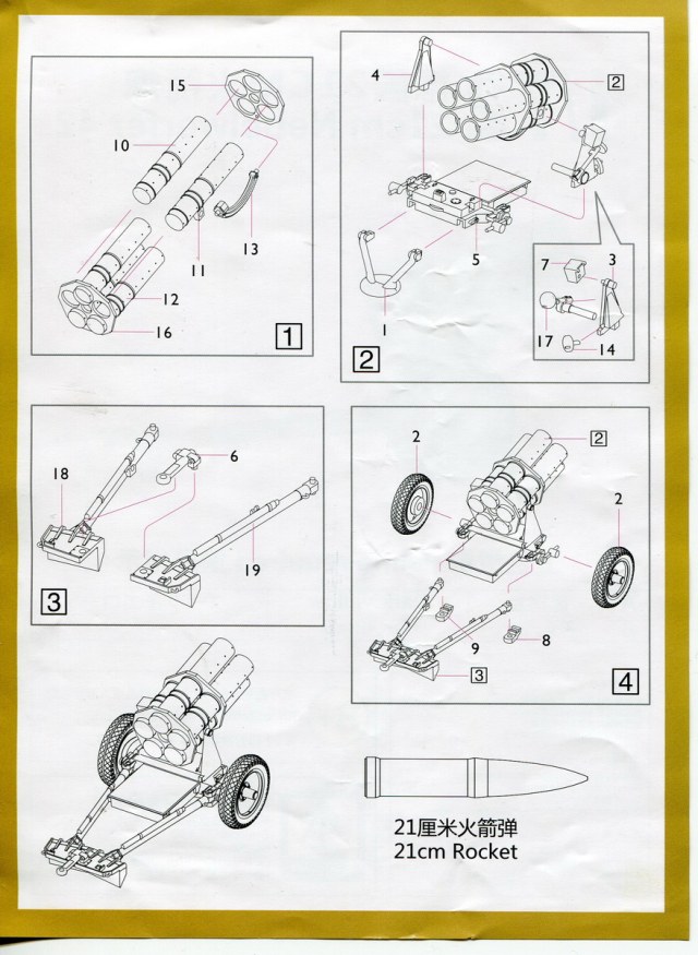 " В конце 1941 г. — начале 1942 г. был создан 21-см пятиствольный реактивный миномет 21 см Nb.W 42(21 сmWgr.42 Spr). Блок из пяти 21-см труб (стволов) был установлен на лафете миномета 15 см Nb.W41, в который были внесены небольшие изменения. Их производство продолжалось до конца войны.