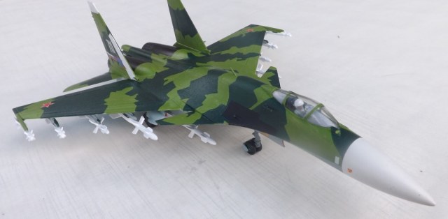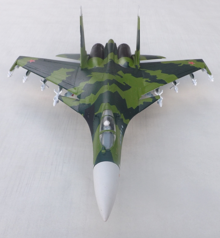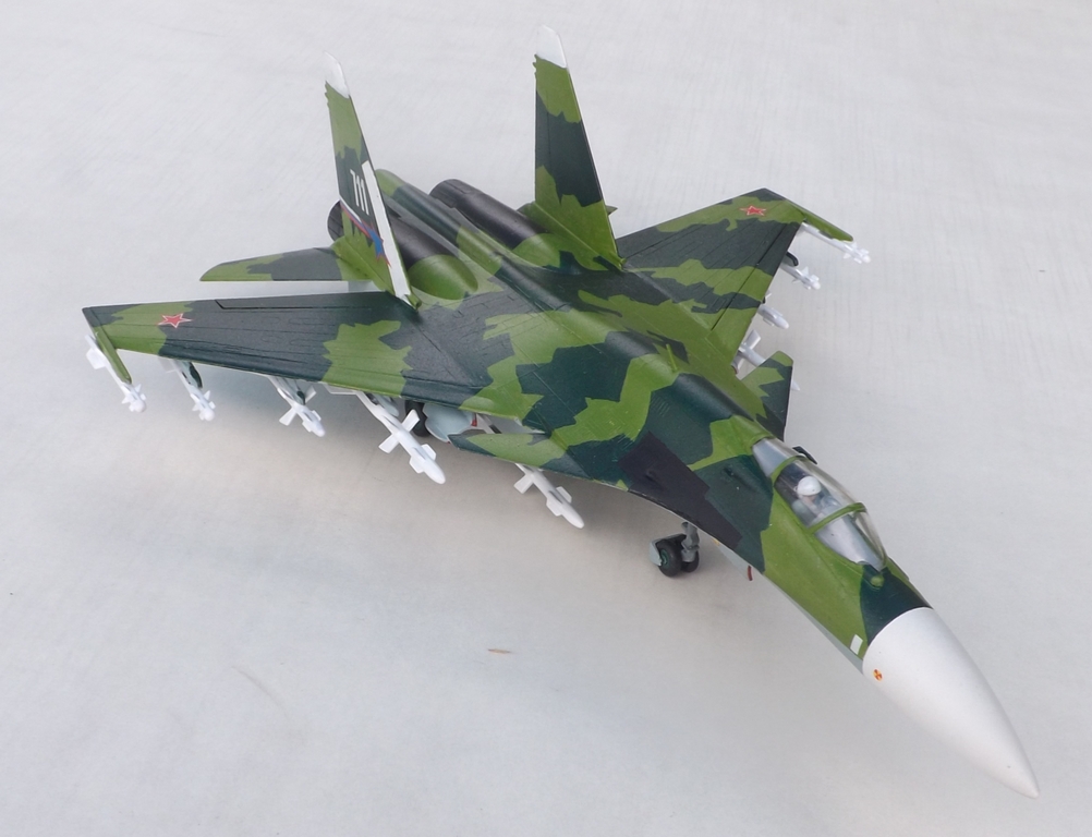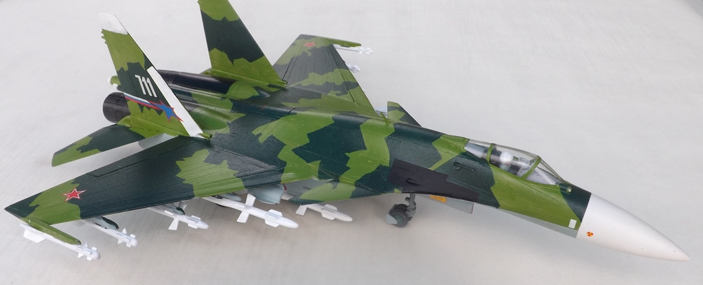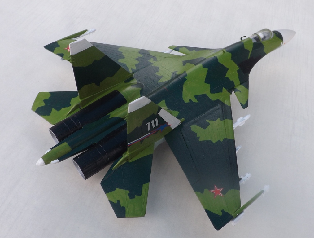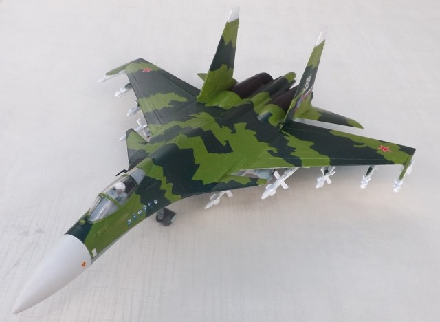 Здравствуйте. Представляю модель «по мотивам Су-37». Это мой первый опыт по окраске модели. Красил кистью «мастер акрилом» и Тамией. Автомобильный лак-спрей LUCKY. Все замечания по поводу нестандартного цвета принимаются, но он мне просто понравился в отличие от стадартного кирпично-коричнево – телесного.