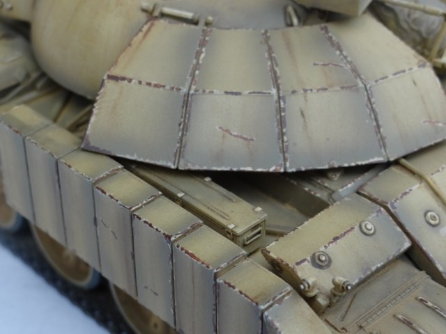 Хорошая работа. Сколы несколько однообразные, но не скажу, что работа совсем испорчена. Вполне танк удался.