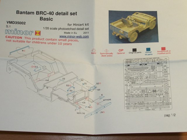 Приобрел около года назад кит "Bantam BRC-40" от MiniArt. Изучив увидел, что детализация данного набора, мягко скажем, скромная. Например, отсутствует панель приборов. Соответственно озадачился поисками и приобретением афтермаркета (фототравление, колеса, декали и т.д.). И вот, наконец, пришел первый набор из заказанных - базовый набор фототравленых деталей от Minor.