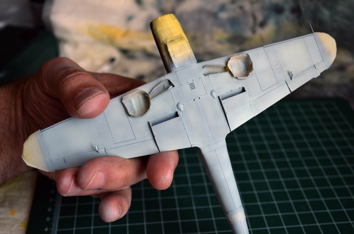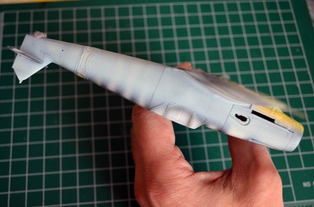 Да, сроки, сроки... Я хотел сделать и нумерацию шпангоутов, и техничку, и пунктирную разметку. Там более, что декали технички остались от мессера ИСМ, а разметку сделать не сложно. Остановило то, что пришлось бы ко всему перечисленному самому городить разметку подножки, а все это уже выходило за мои временные рамки, и было принято решение... не делать ничего из перечисленного.