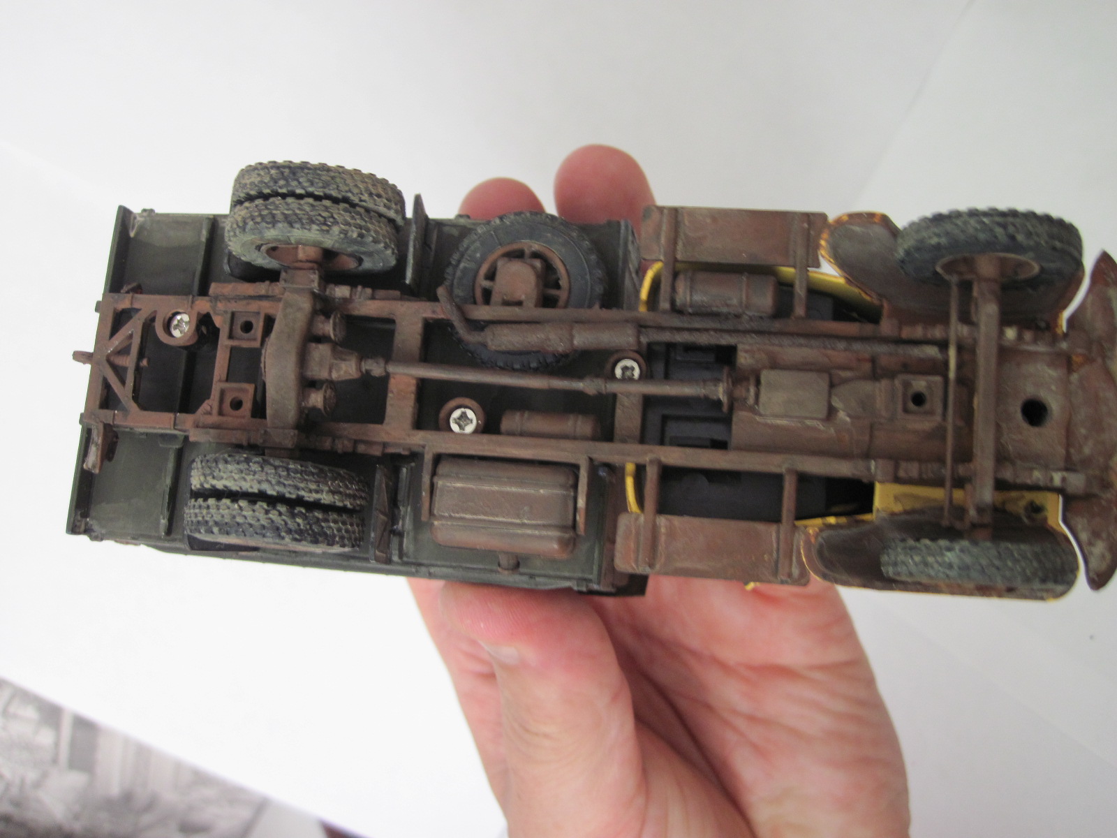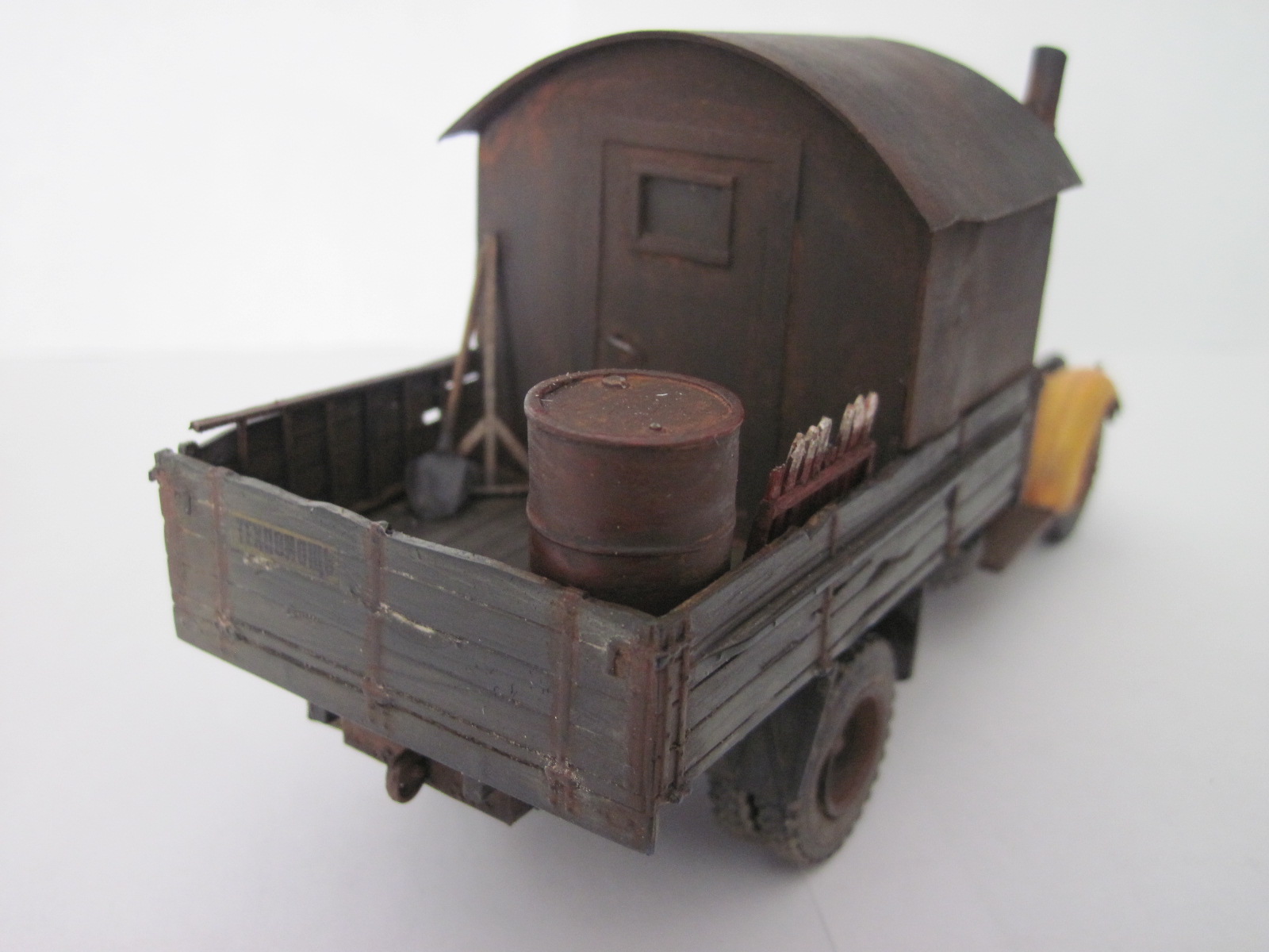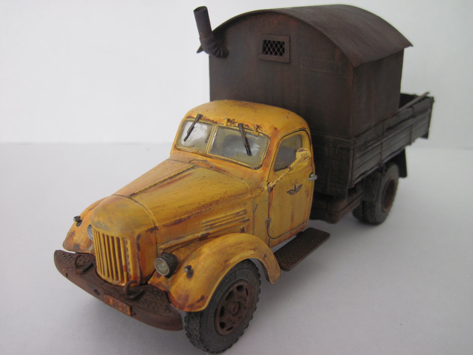 Не похоже на железо, скорее на дерево. Как кузов оттонирован нравится. С кабиной грубовато получилось, в частности сколы- они огромны, а сам цвет кабины как новенький. Грязь/пыль на ходовке понравились. Фото шумные какие то, что здесь, что у предыдущей работы.