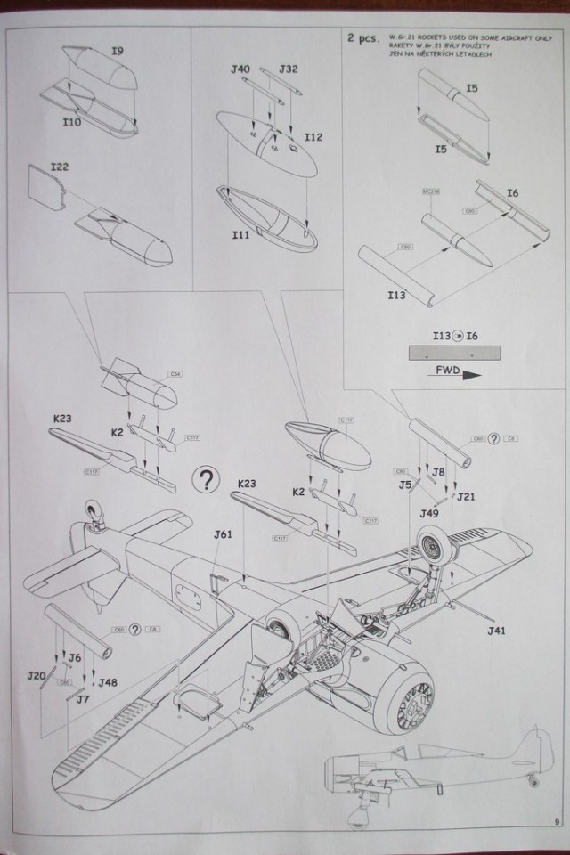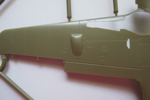 Пластик гладкий, хорошо обрабатывается ножом и напильником, не слоится. Расшивка и клепка тонкие и аккуратные и в тот же момент достаточной глубины чтоб не залить при покраске. Кокпит даже без травления проработан очень не плохо. Приборку и боковые панели можно изобразить как декалью так и самому покрасить рельефные детали. Пилота нет. Довольно подробно дан отсек вооружения. В наборе есть и двигатель который в сборе выглядит неплохо. Можно сделать самолет как с открытым движком так и закрытым, хотя по найденным в сети отзывам придется стачивать изнутри капоты. Присутствуют 2 винта. 1 с широкими лопастями(не используется) второй с узкими. Ниши шасси имеют рельеф. Основное шасси дано 2мя видами-если не ошибаюсь ранним и поздним причем оба вида есть как с протектором так и без. Но самое главное что хвостовая стойка идет как отлитая вместе с колесом так и раздельно. Подвесное вооружение-на центральном пилоне можно подвесить ПТБ или бомбу. Под крыльями возможна установка 210мм ракет.