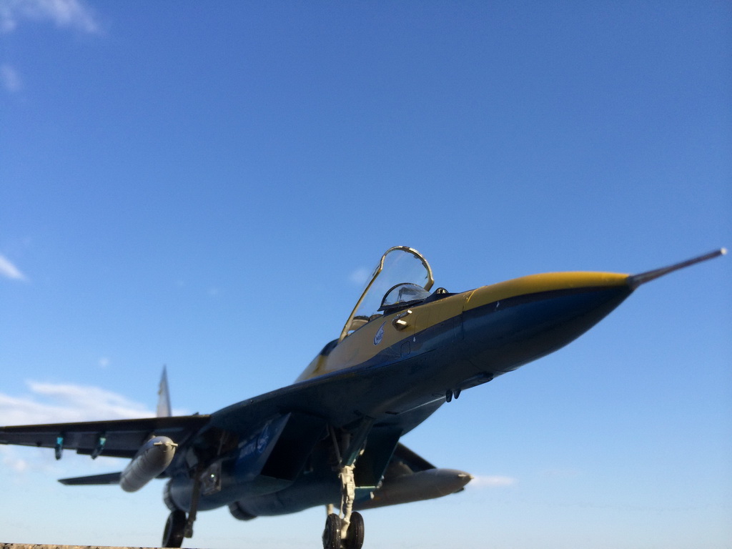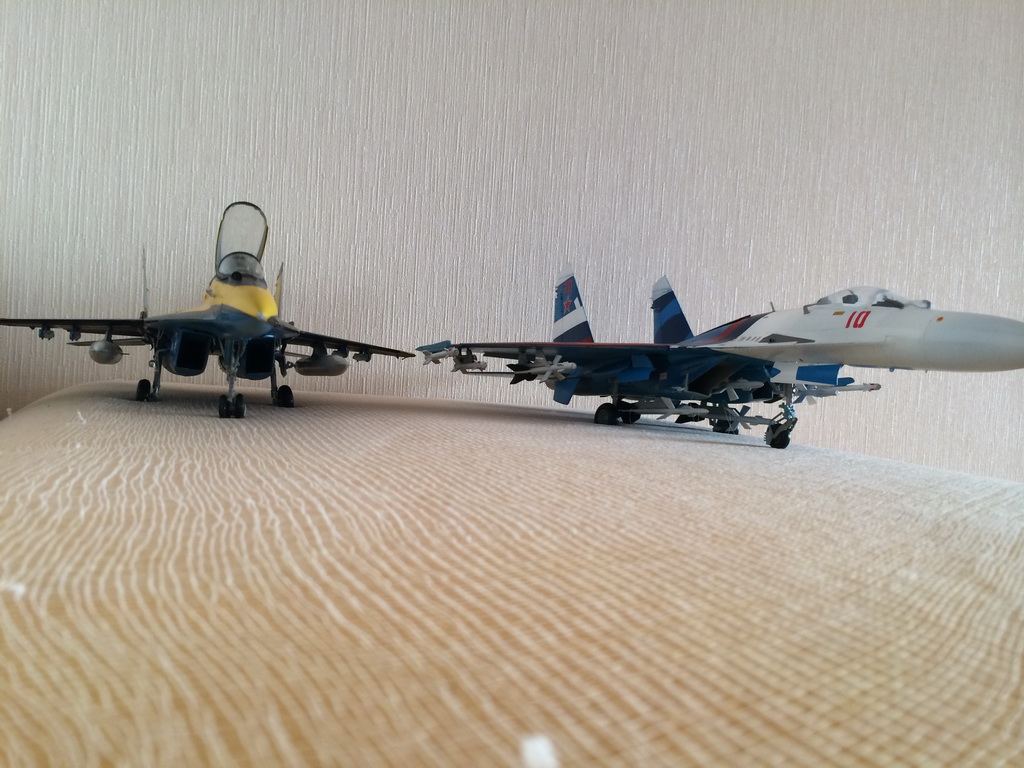 Всем привет!! для начала кратенько с википедии. - МиГ-29 (изделие 9-12, по кодификации НАТО:Fulcrum — точка опоры) — советский/российский многоцелевой истребитель четвёртого поколения[4], разработанный в ОКБ МиГ. Посмотреть видео можно по ссылке: http://www.youtube.com/watch?v=XhyUSnzClGk Понравился очень окрас и начал собирать материал про такие Миги. И теперь посвящаю памяти 2-м разбившимся машинам на авиашоу в Англии в 1993 г \ в инете нашёл также байку,что авария связана с тем, что наши лётчики после пролёта англичан на расстоянии 5 м сказали, что мы пролетим на 3х метрах........\ Модель из коробки.