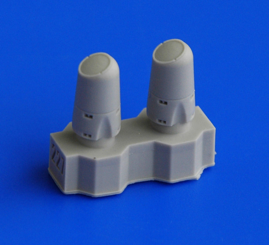 Деталировка поверхностей выполнена на высоком уровне, качество литья великолепное. После удаления литников необхомо выровнять две торцевые поверхности, это не должно вызвать проблем у опытного моделиста. Для упрощения установки, хвостовой части, я просверлил отверстие, вклеил металлический центрующий стержень (диаметр 2 мм), который помог ровно состыковать две детали. Прозрачная линза ГСН благодаря конусному хвостовику становится идеально, перед установкой рулей рекомендую сверлом диаметром 0,6 мм аккуратно снять фаску. Все, больше проблем нет, дальше только покраска и нанесение декалей.