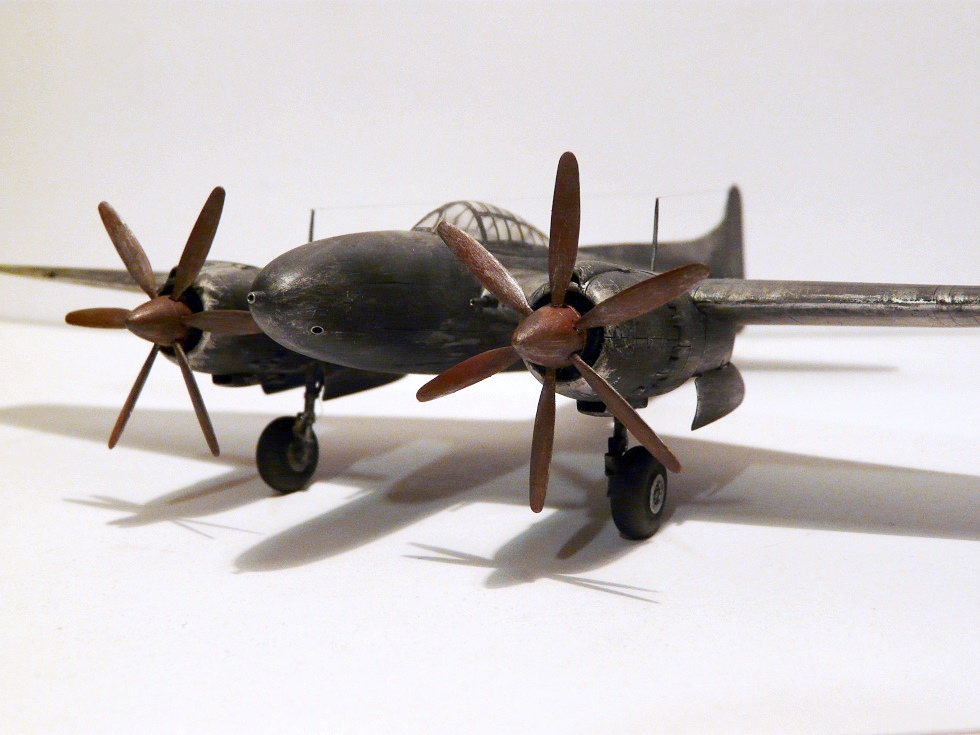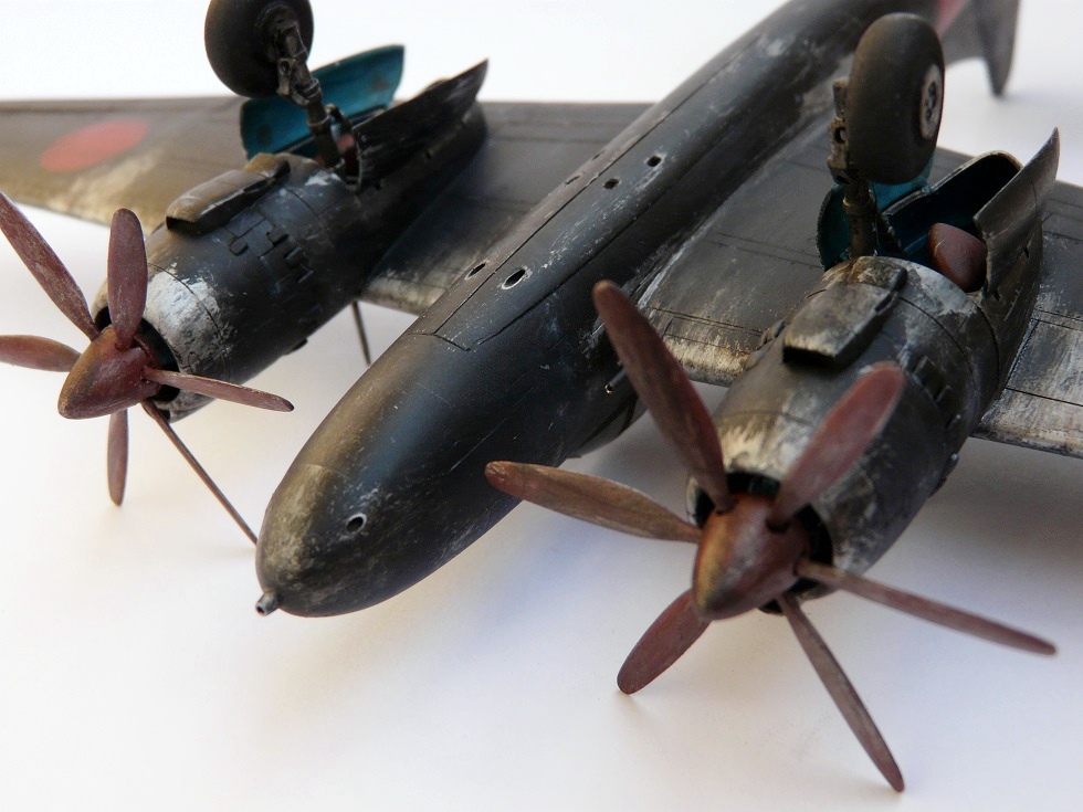 Модель собиралась в этом году. За основу была взята "Гинга" от Хасегавы. От работы с моделью получил удовольствие, все доработки из подручных средств. В основном дорабатывались ниши шасси, винты и внутренности кабины. Гаргрот самодельный. Много повозился с индивидуальными выхлопными патрубками, их много и каждый пришлось расточить...