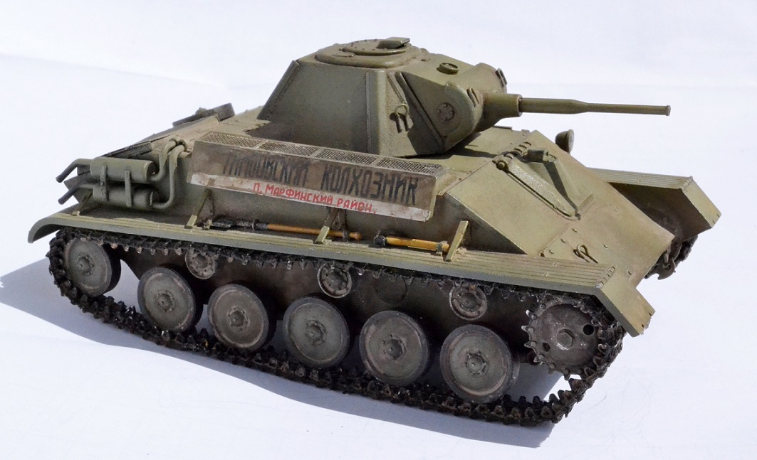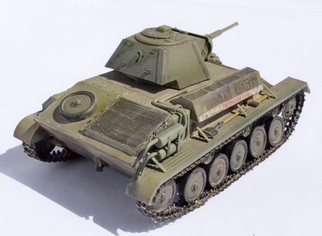 Исторической привязки модель не имеет, просто Т-70М. Надпись относится к зимнему камуфляжу, но решил использовать на летнем, просто надпись понравилась.