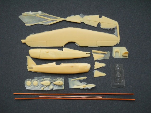 Модель от фирмы Dujin в масштабе 1/72 из смолы (номер по каталогу 72206). Стандартная упаковка в пакете, в котором содержатся смоляные детали, ваку-фонари, металлические профили, лицевой листок-вкладыш и инструкция. Литьё неплохого (для Dujin) уровня, хотя и имеется несколько пузырей. Козырёк кабины можно было бы назвать нормального качества, если бы он не был слегка пожелтевшим. Декали отсутствуют. В инструкции содержится краткая справка о самолёте и схема окраски.