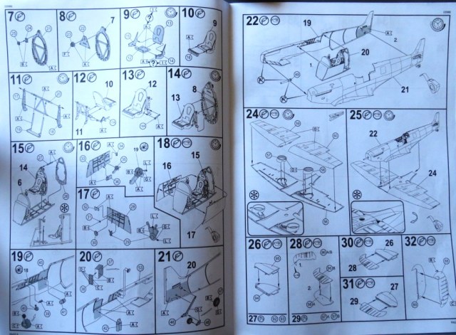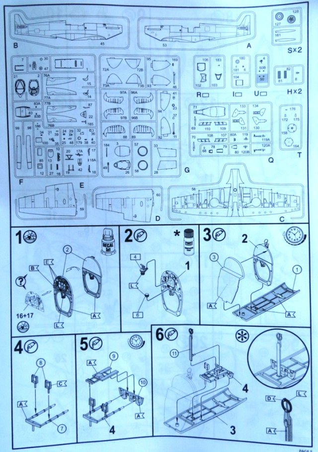 Сразу скажу, модель мне очень понравилась, хотя и не лишена недостатков. Но обо всём по порядку. Модель упакована в плотную коробку в стиле Ревелл, которая открывается сбоку. Если бы разнималась на 2 половинки – было бы удобнее. Внутри 10 литников из светлого пластика и 2 литника из прозрачного пластика. Дана достаточно подробная инструкция на 12 страницах и декаль на 2 варианта. Декаль отпечатана в Италии.