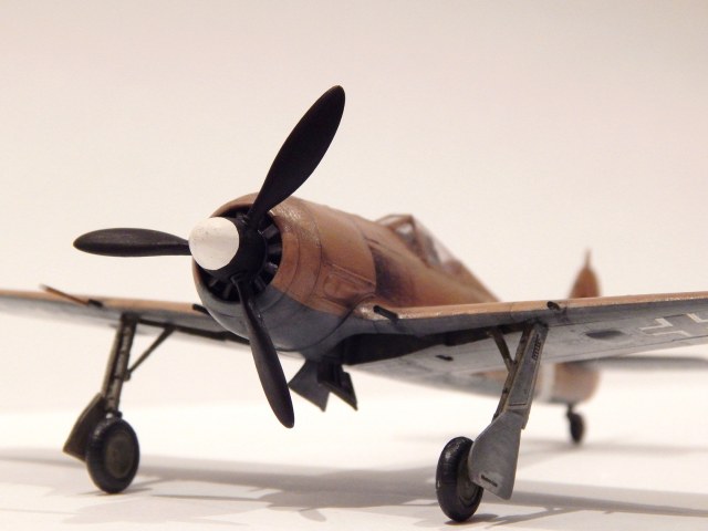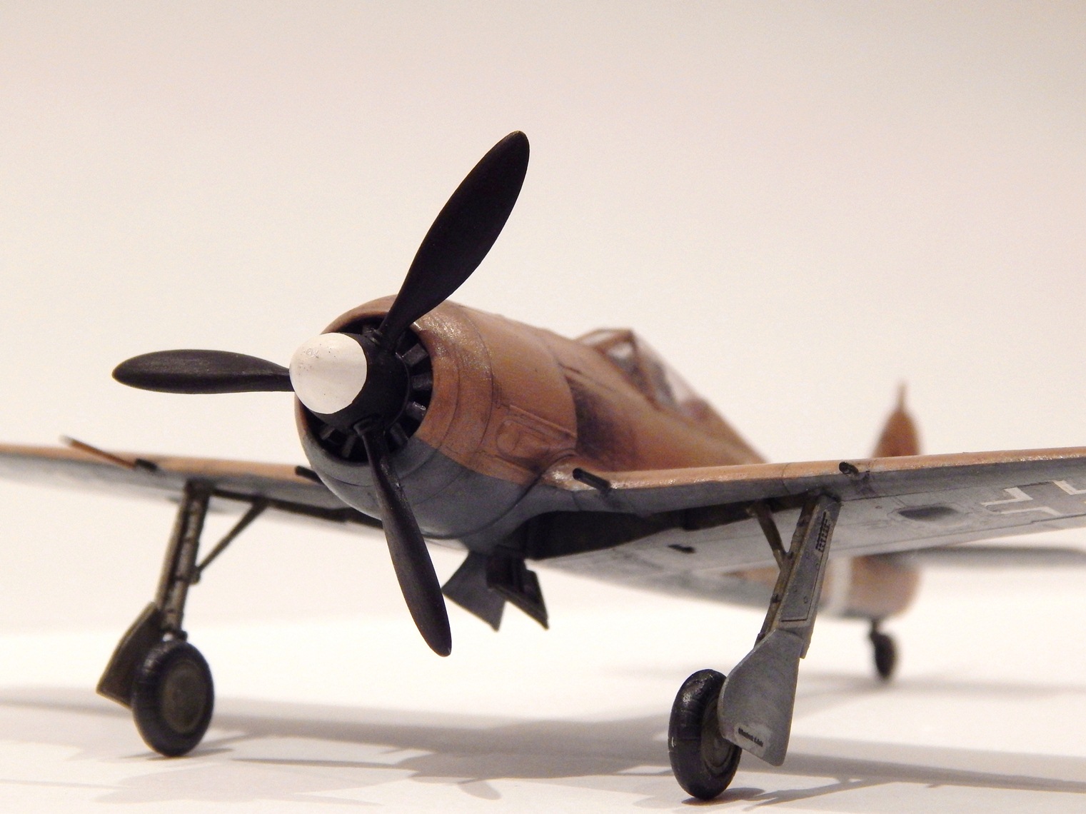 Как человек, недавно делавший эту модель (это ведь "сборка без клея"?) и красящий исключительно кистями, скажу, что заметил только два небольших косячка (не считая указанных дисков и винта) - это то, что не зашпаклеван лишний шов на пузе (см. фото), и слишком густая, ИМХО, краска для кисти.