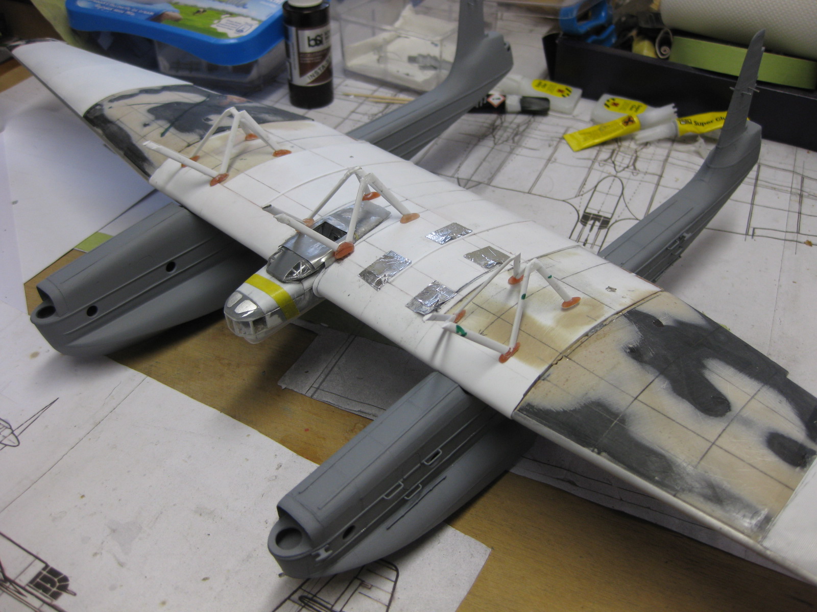 Модель построена из листового и гофрированного пластика. Поплавки, тандемы, пропеллеры, а также некоторые части фюзеляжа и кили отлиты из эпоксидки. Туррели и остекленение кабины вытянуты из прозрачной упаковки. Модель полностью обтянута фольгой. Для устойчивости аппарата, поплавки , переборки и пол лодок залиты свинцом. Модель строилась периодически , на протяжении трех лет.Имеет длину 0,35 м. и размах 0,71 м.