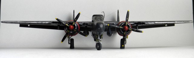 15. Сделана новая, неподвижная башня - "колпак", устанавливавшаяся на большинство тихоокеанский Р-61В и все Р-61В из 548nfs. Сначала на основе родной башни сделана болванка, по ней выдавлена башня из пластика, усилена милипутом, установлена на модель. Из фольги добавил окантовку и пару лючков.