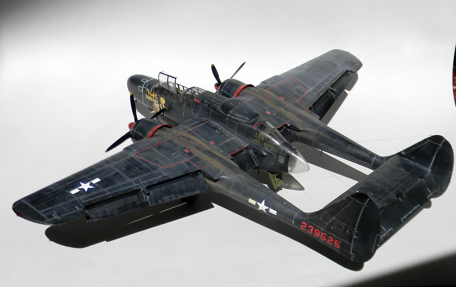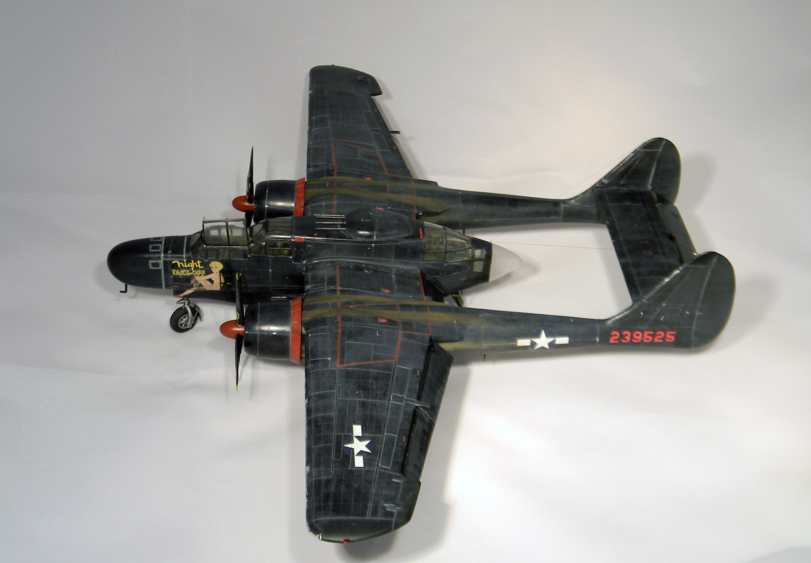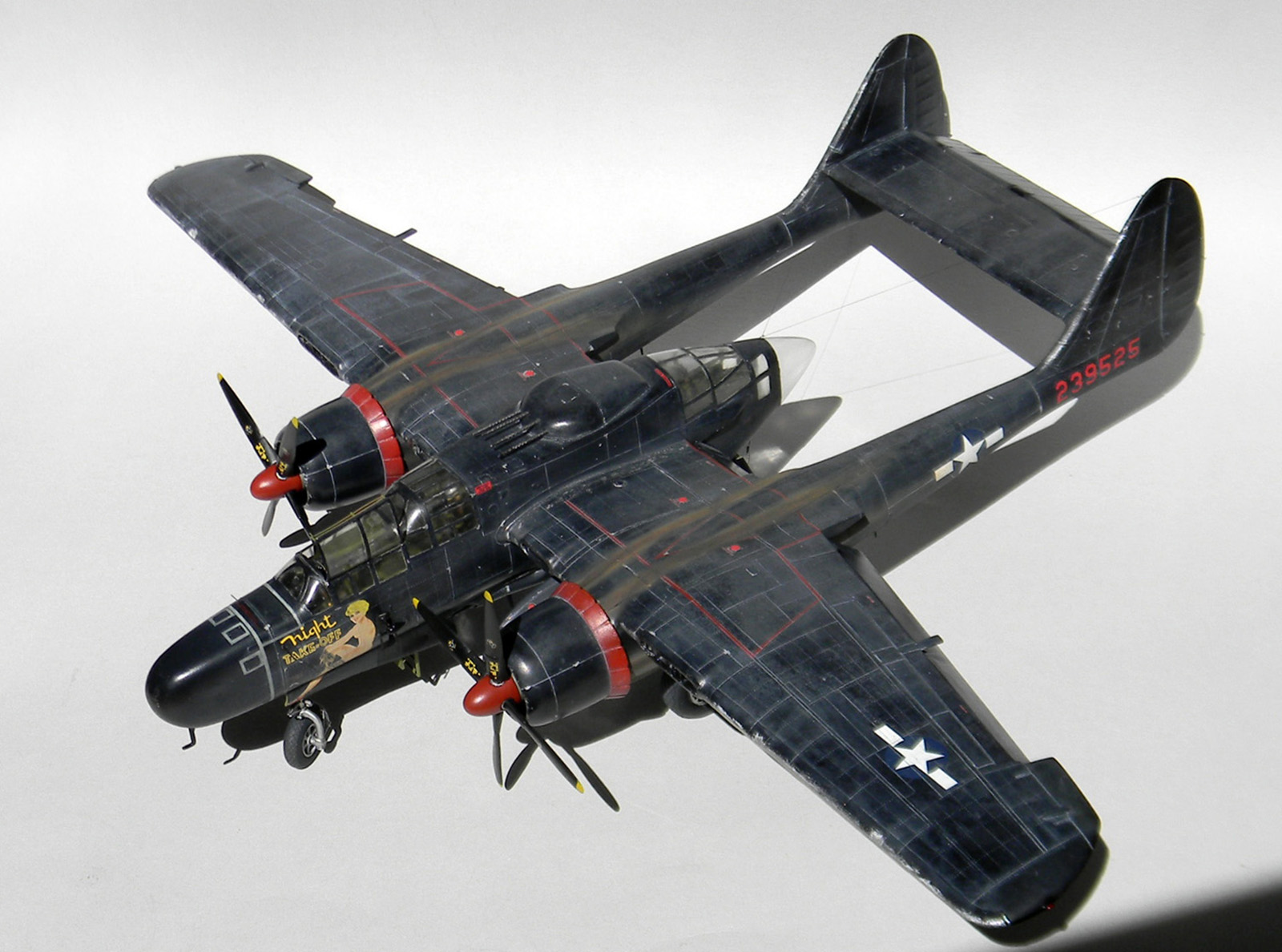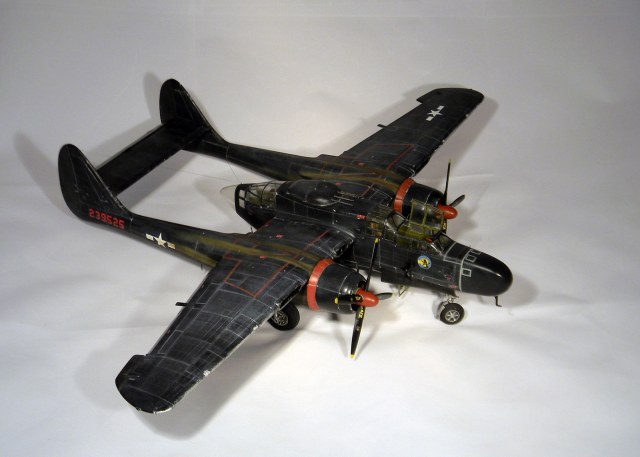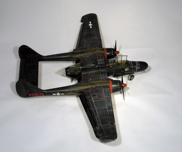 Вариант окраски под самолет P-61B "Black Widow" с серийным номером 42-39525, "Night Take-off". 548-ая эскадрилья ночных истребителей, Иводзима, весна 1945 года.