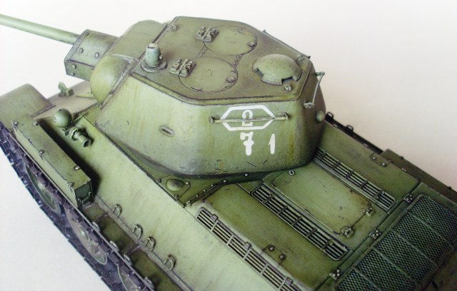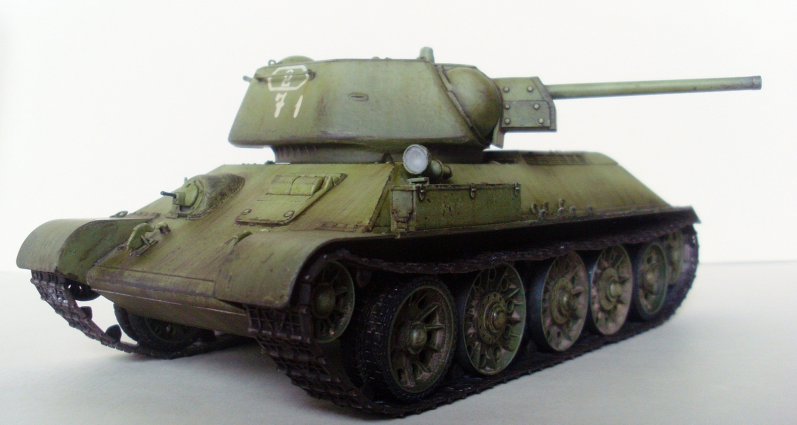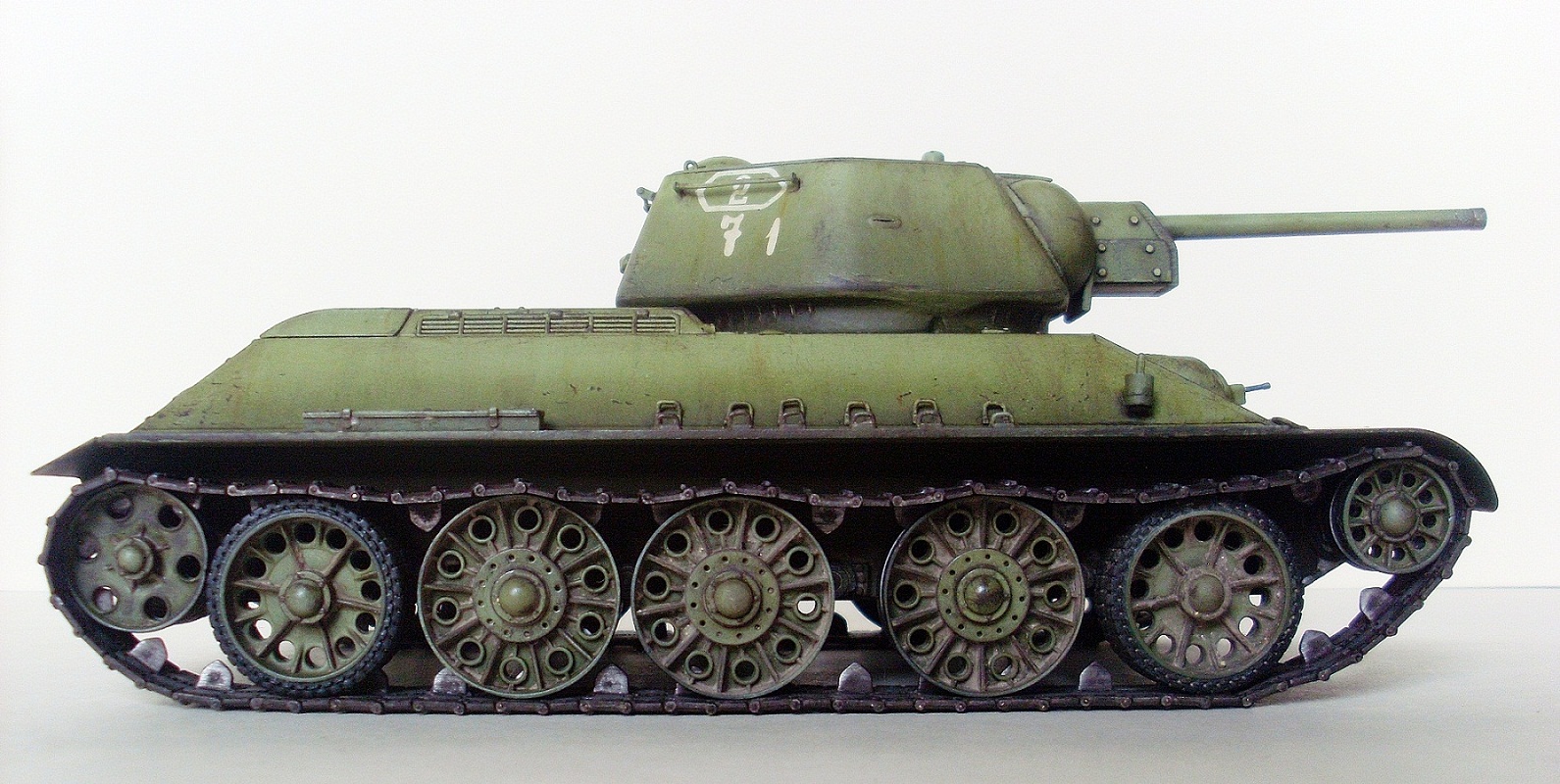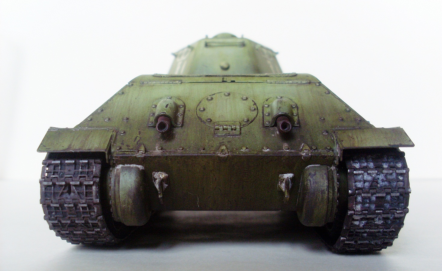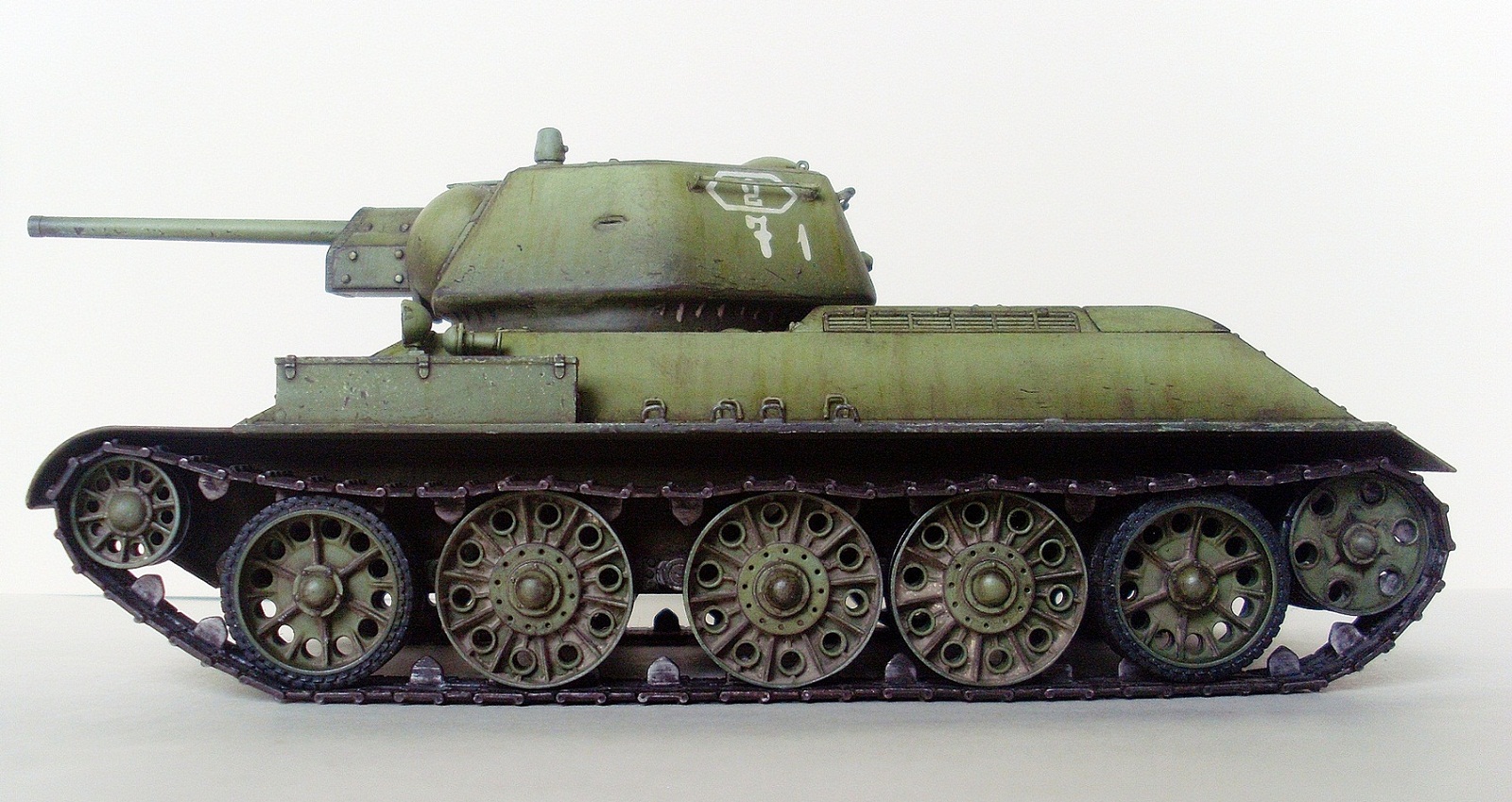 Модель отличная. Да, глушаки можно было рассверлить. На мой взгляд, крупноватые петли для крепления запасных траков и грунтозацепов. И добавить потертости на башне вокруг люков . Это самое затираемое место на башне. На данной модели потертостей вообще нет. По поводу мат. части знатоки скажут или уже сказали. Но мне кажется судить строго по мат. части Т-34 сложно. Так как выпускалось многими заводами и поставки были различными комплектующими, плюс огромное количество выпущенных танков, различная ремонтная база.