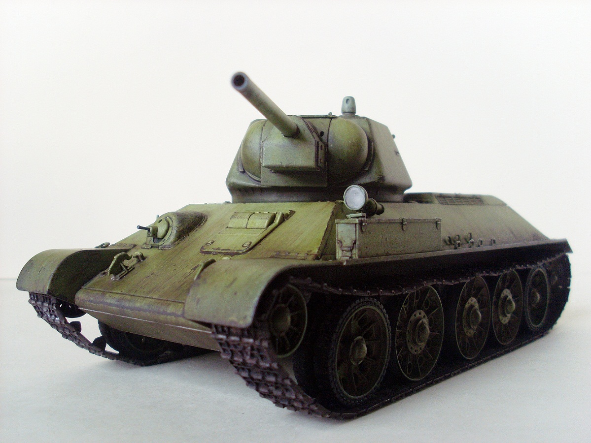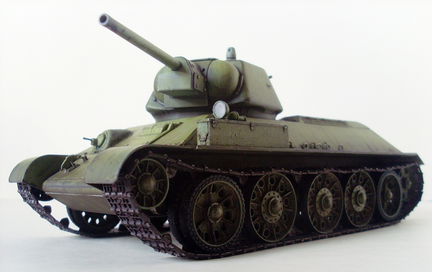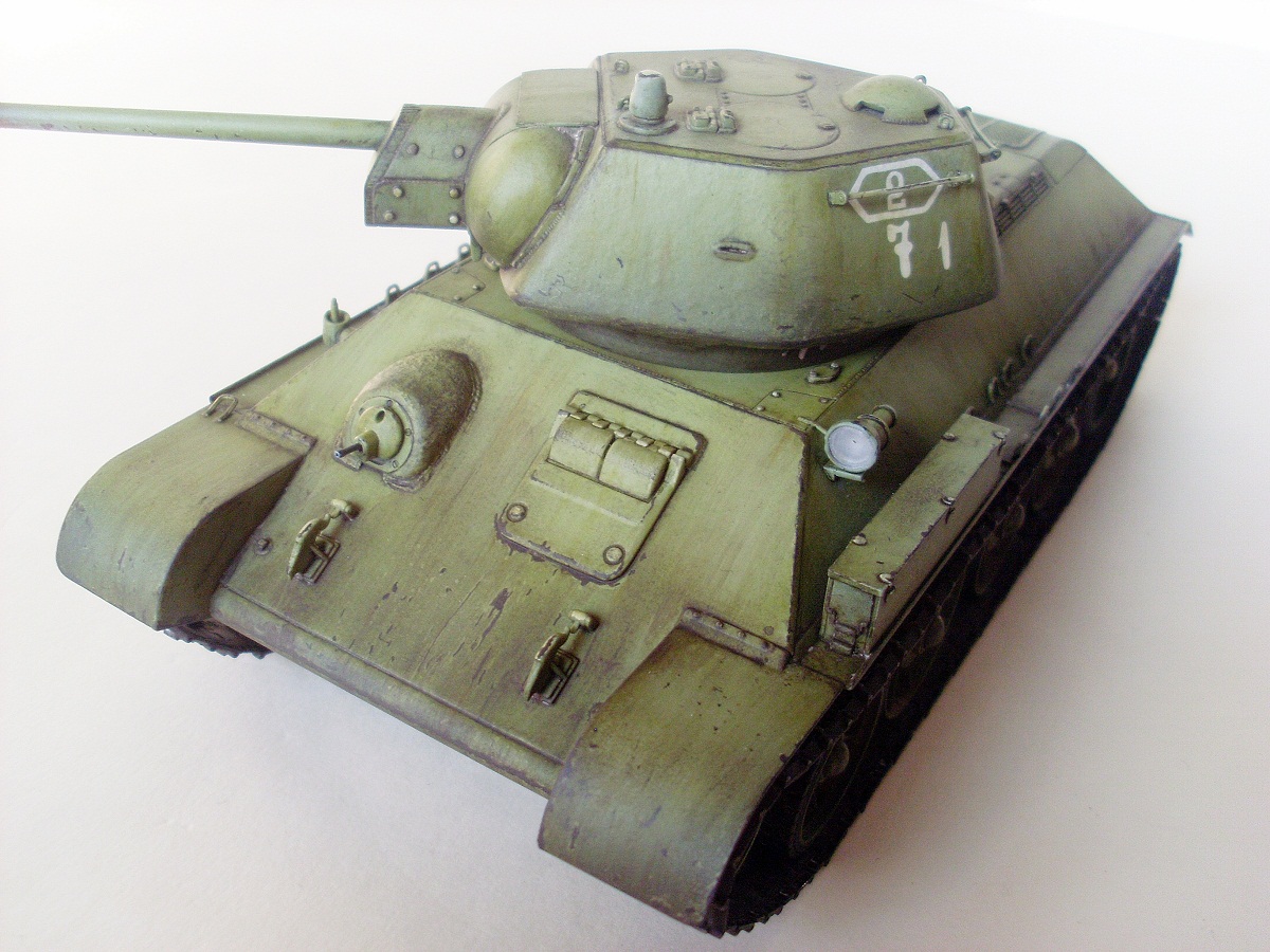 Если по мне, так все нормально. Кроме, как уже заметили, мутной фары и добавить бы потертостей на башне у люков. Цвет нормальный, а спор о "правильном 4БО" это вечная тема, т.к. практически у каждого свой взгляд на него. Но, в общем, согласен с автором, что модели это не танки стоящие однообразными рядами как в Кубинке. Там музей, тут полка. Главное, что бы автору нравилось самому. Матчасть Т-34 это вообще отдельная тема, некоторые танки на исторических фото выглядят как "сборные солянки".