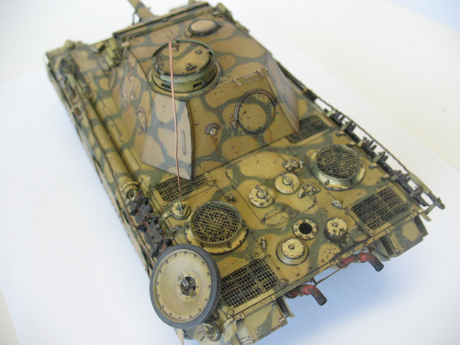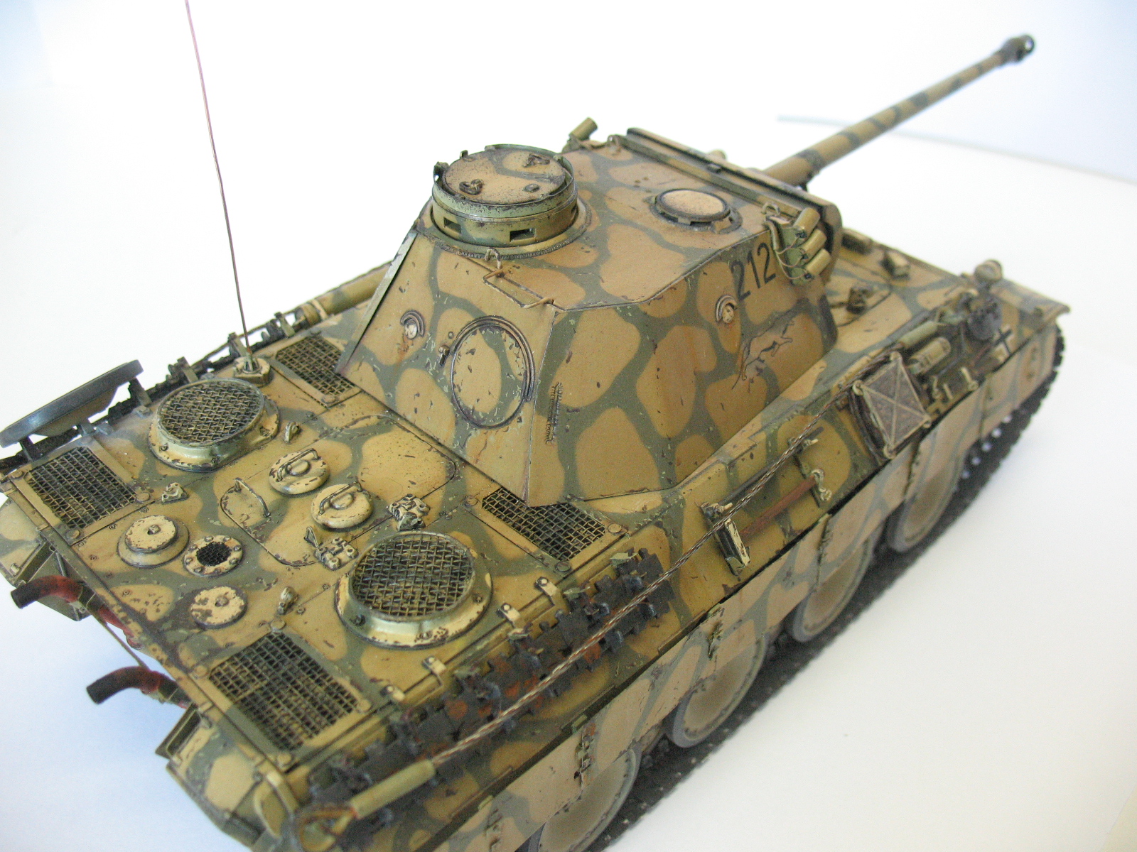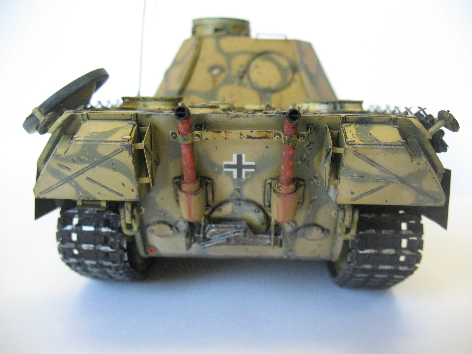 Ведро не порадовало( Порадовало наличие проводки к мортиркам, не все делают. В целом понравилось. По матчасти - скачай из нета книгу по пантере и архивные фотки посмотри, у тебя на пример тепловые экраны на корме и сетки на мто не совсем как надо.