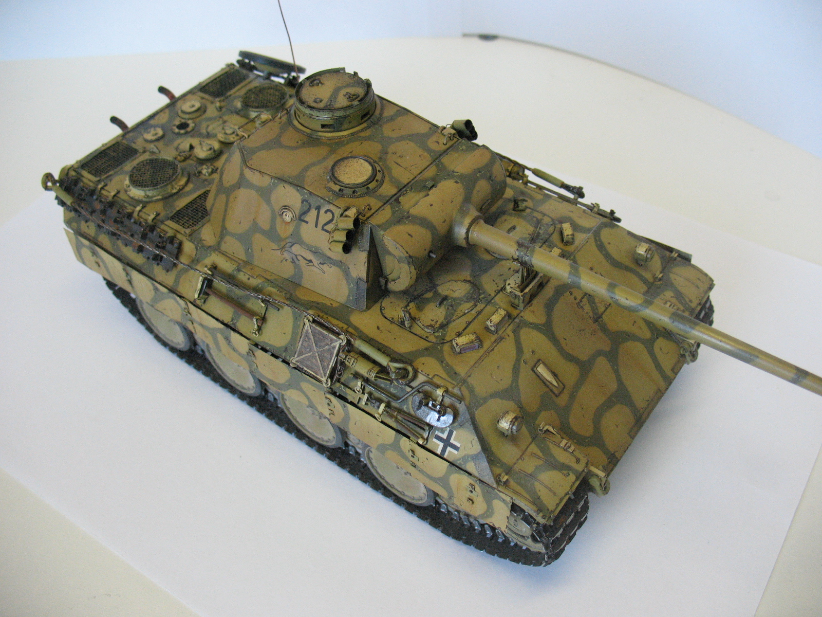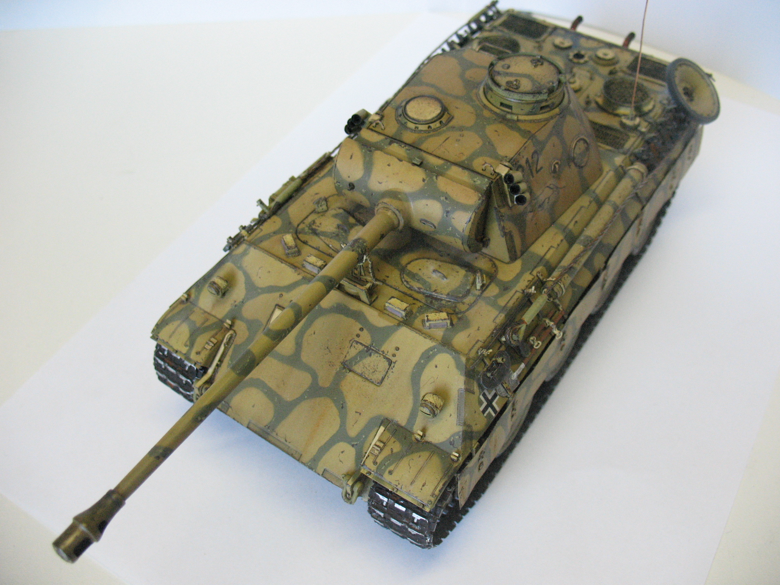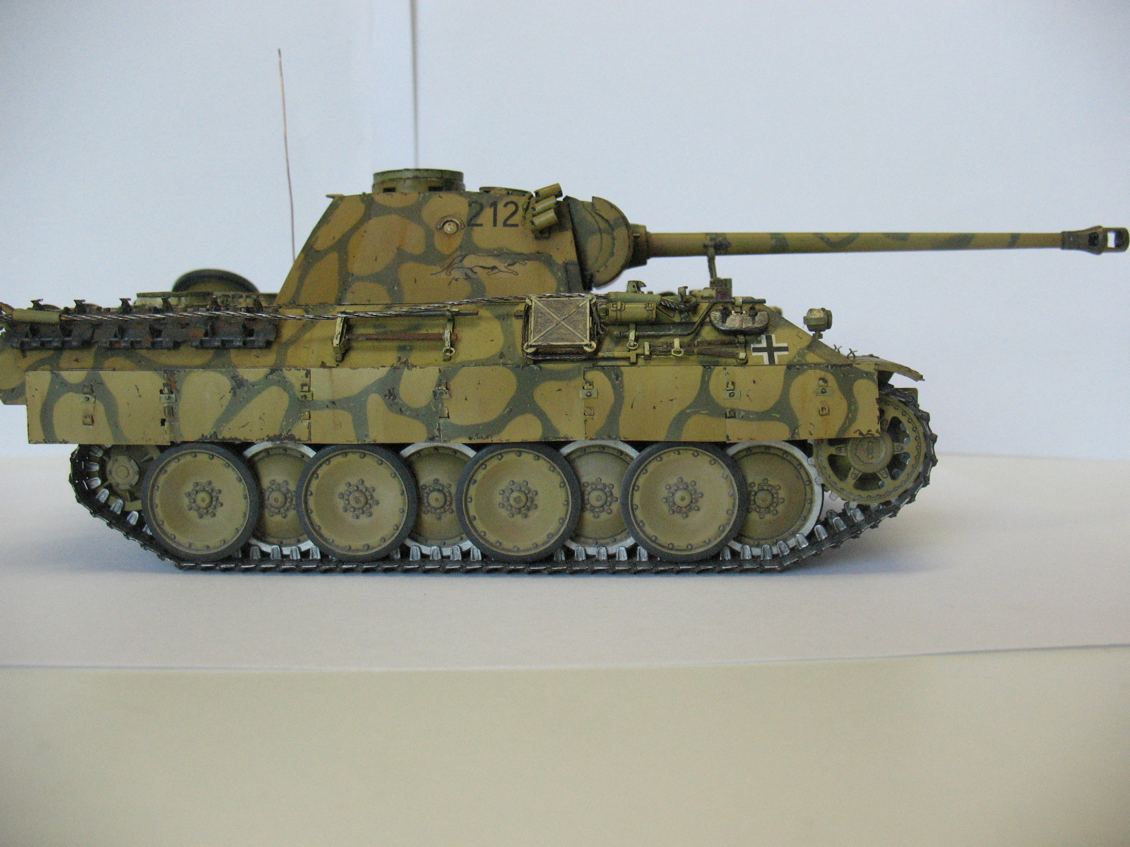 Ведро не порадовало( Порадовало наличие проводки к мортиркам, не все делают. В целом понравилось. По матчасти - скачай из нета книгу по пантере и архивные фотки посмотри, у тебя на пример тепловые экраны на корме и сетки на мто не совсем как надо.