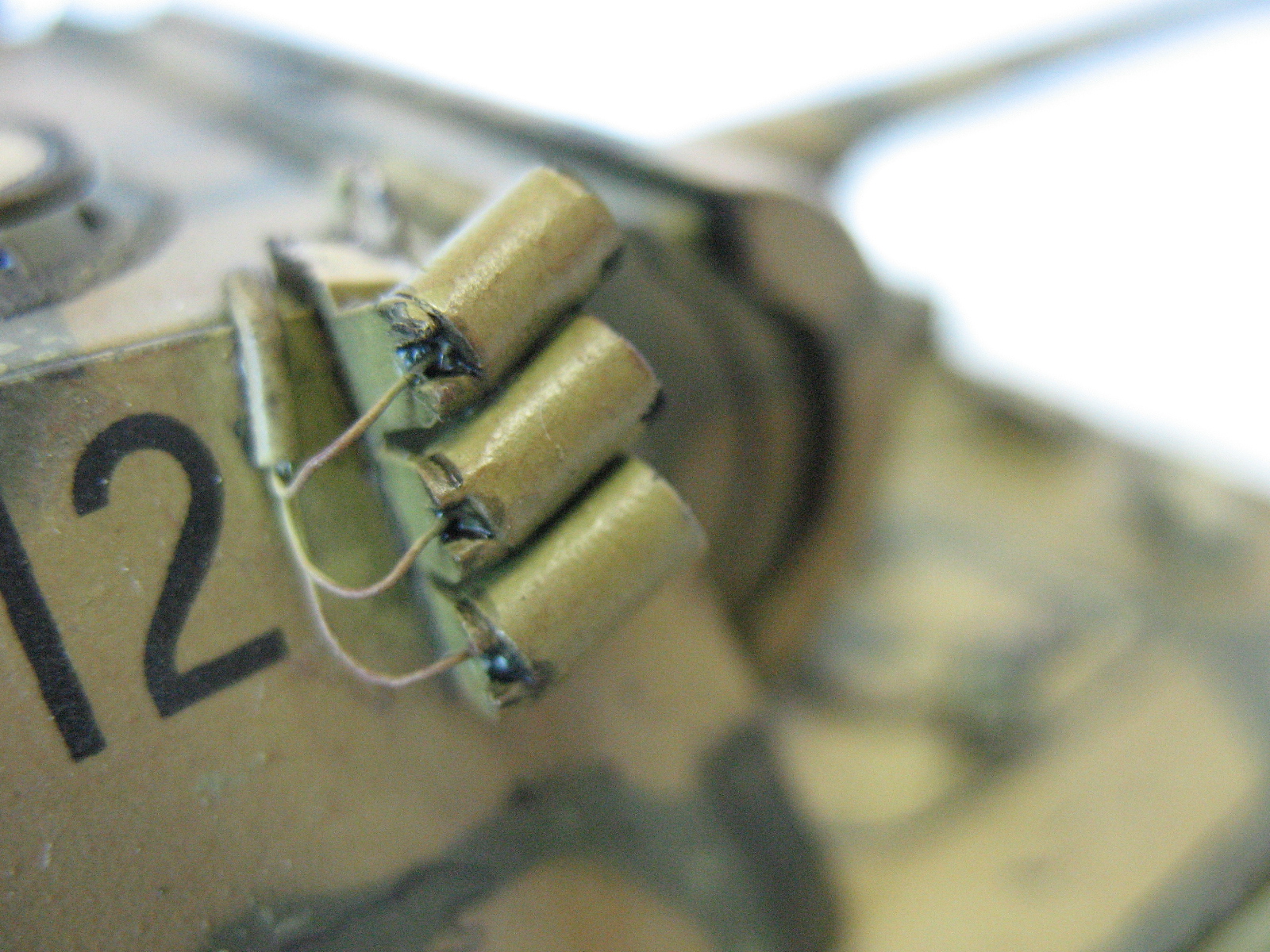 Сначала закрыл модель масками. Маски сделал из массы для фиксации "секунда". Купил в ОКЕЙ за 44 руб. в отделе химии. Ушло чуть больше упаковки. Просто лепил овальчики, плющил, придавал форму и приклеивал))). После обклейки дунул с аэра краской OLIVE GREEN. Вот такая история. Следов после снятия никаких. Проверено!