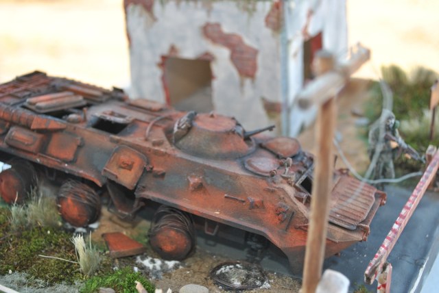 отличная диорамка, но следов мусора не хватает. Даже если БТР пару лет простоял так, все равно "бяка" какая нибудь должны быть. А так жутковато смотрится=)