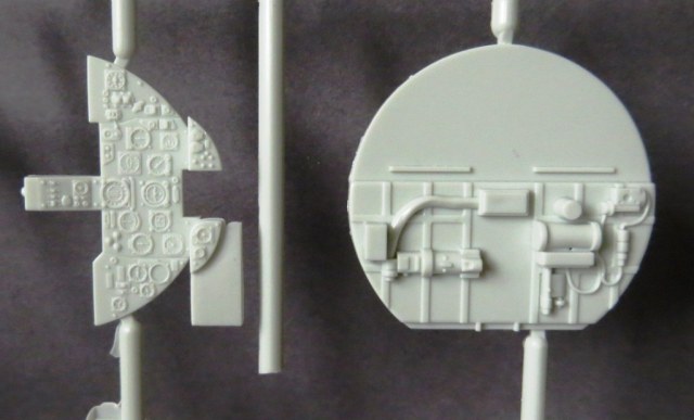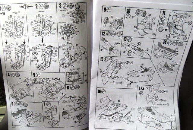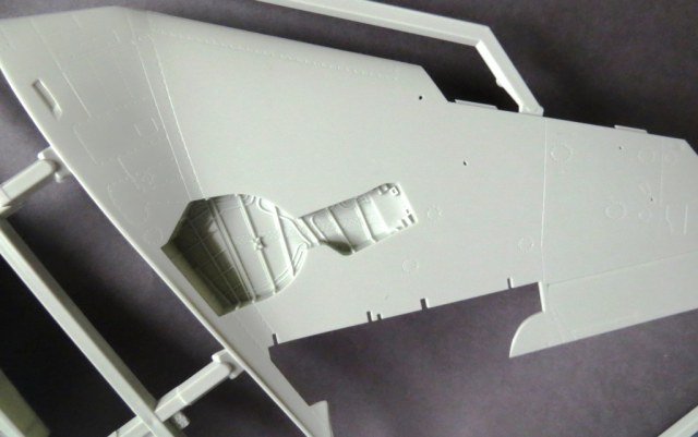 Кабина хорошо проработана ,к каждому варианту идет своя приборная панель.Фюзеляж собирается из 4 частей.Расшивка внутренняя -хорошо выполненная.Шасси тоже проработаны неплохо.Фонарь прозрачный ,имеется клепка.Колеса уже выполнены приспущенными .Имеются дополнительные пилоны для Швейцарского варианта.