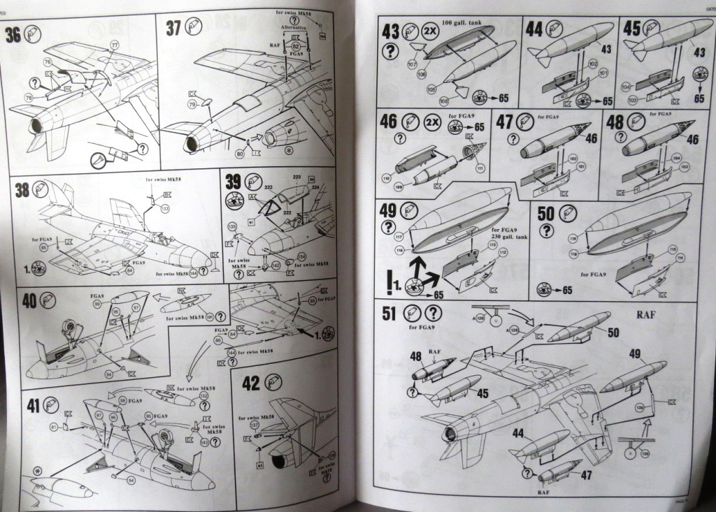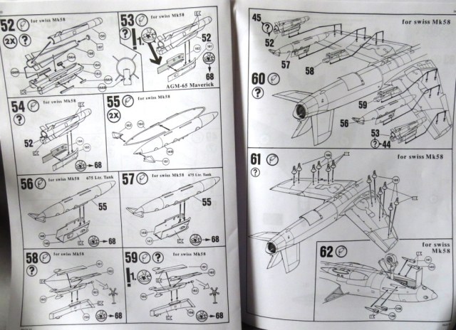 Инструкция подробная и понятная,прописаны пункты сборки обоих вариантов истребителя.Так же присутствует схема подвески вооружения.