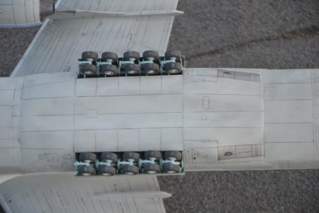 С брюхом маленькое замечание - тонировка неживая, а точнее, её там вообще нет в нужных местах. Створки шасси имеют за собой по потоку неслабый шлейф грязи. Даже если её отмыть, то ореол остаётся. Вокруг створок тоже можно немного пройтись апликатором с пудрой, как и вокруг всех дверей и лючков. Ну и протянуть слегка от лючков. На мой взгляд, по тонировке верх сойдётся с низом после этого, пока что низ чище, а это нелогично.