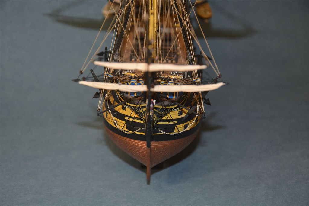Не разбираюсь в парусах, но корабль выглядит очень эффектно и правильно. Единственный косяк, который я заметил, это нижняя черная полоса по левому борту. В районе 4-го...5-го орудия, считая с кормы, она резко становится тоньше.