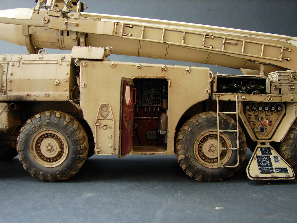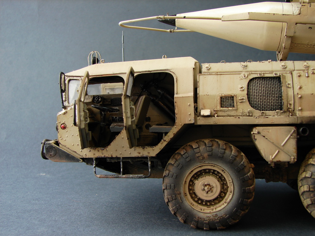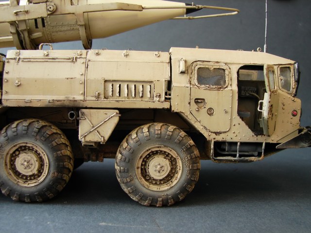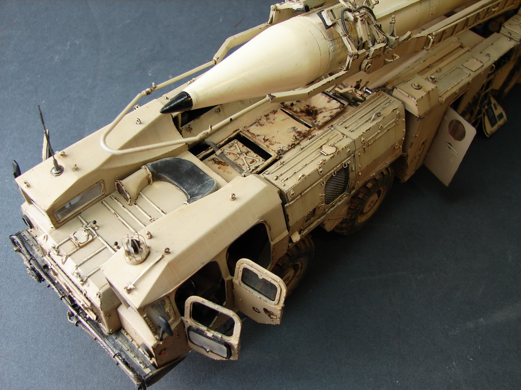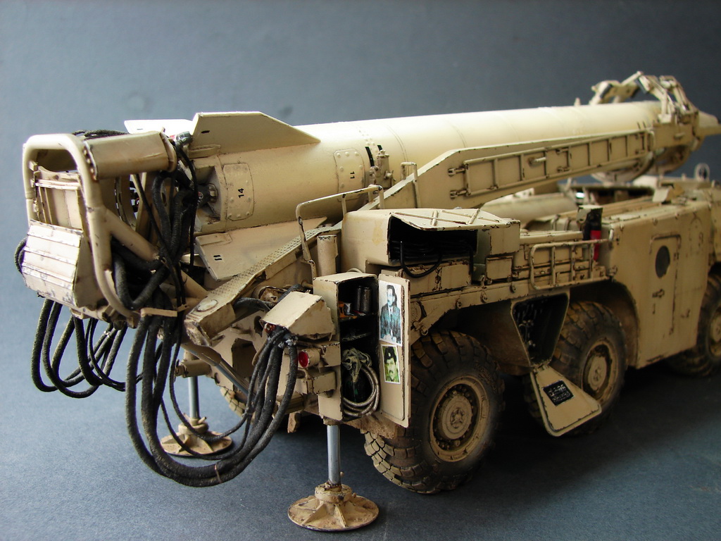 Даже не помню где и когда эту модель купил.Но лет 18, она пролежала у меня точно.))Коробка пережила даже затопление ,от лопнувшей лет 10 назад батареи отопления.В течении этих лет было куплено травление от Эдика.Правда,набор экстерьера старой каденции и не имеет третьей платы где даны различные петельки и др необходимые вещи.Ну,и самое главное -колеса.Спасибо товарищу ,который мне их подогнал .Вначале не планировал делать видимым интерьер,но со временем пришел аппетит.Даже когда начинал делать кабину,то особо не заморачивался и сделал неправильные основания под сиденья.( Давно запланировал диораму с ним.Брошенный в пустыне и найденный спец группой на Хамви,которые и были созданы для поиска и уничтожения Скадов.Пришлось делать все возможные лючки и двери открытыми.Много читал про эту модель ,а оказалось,что не все так страшно.Правда,40% придется воспроизвести самому).Многие вещи очень утрированы.Много времени уходило на просмотр фото прототипа.Каждую мелочь приходилось сверять с фото.Оговорюсь сразу-делал то,что видно и не гонялся за точным размерами.Заковыристая работа получилась.)На сегодняшний день-самая сложная,для меня,работа.Даже водомет,хотя он и делался "с нуля",был легче.