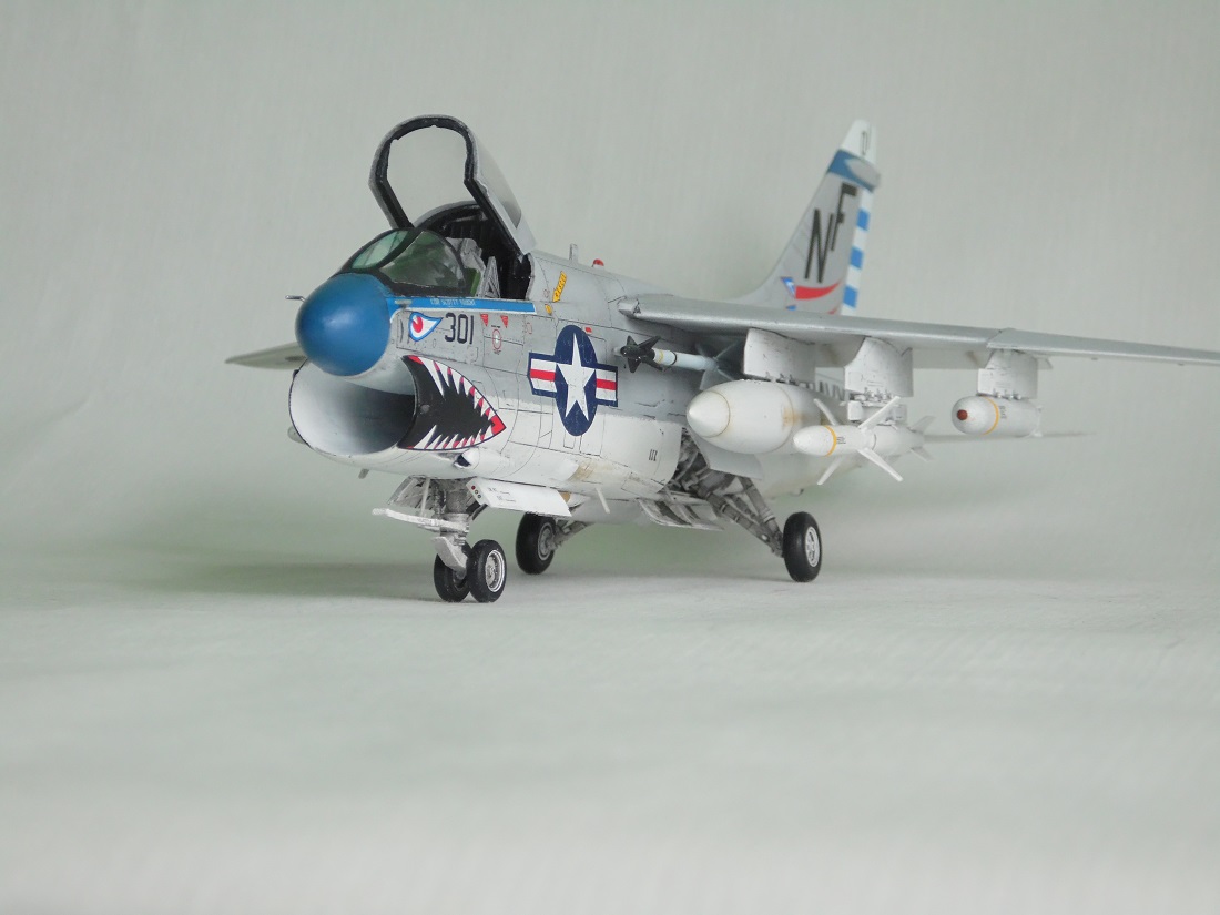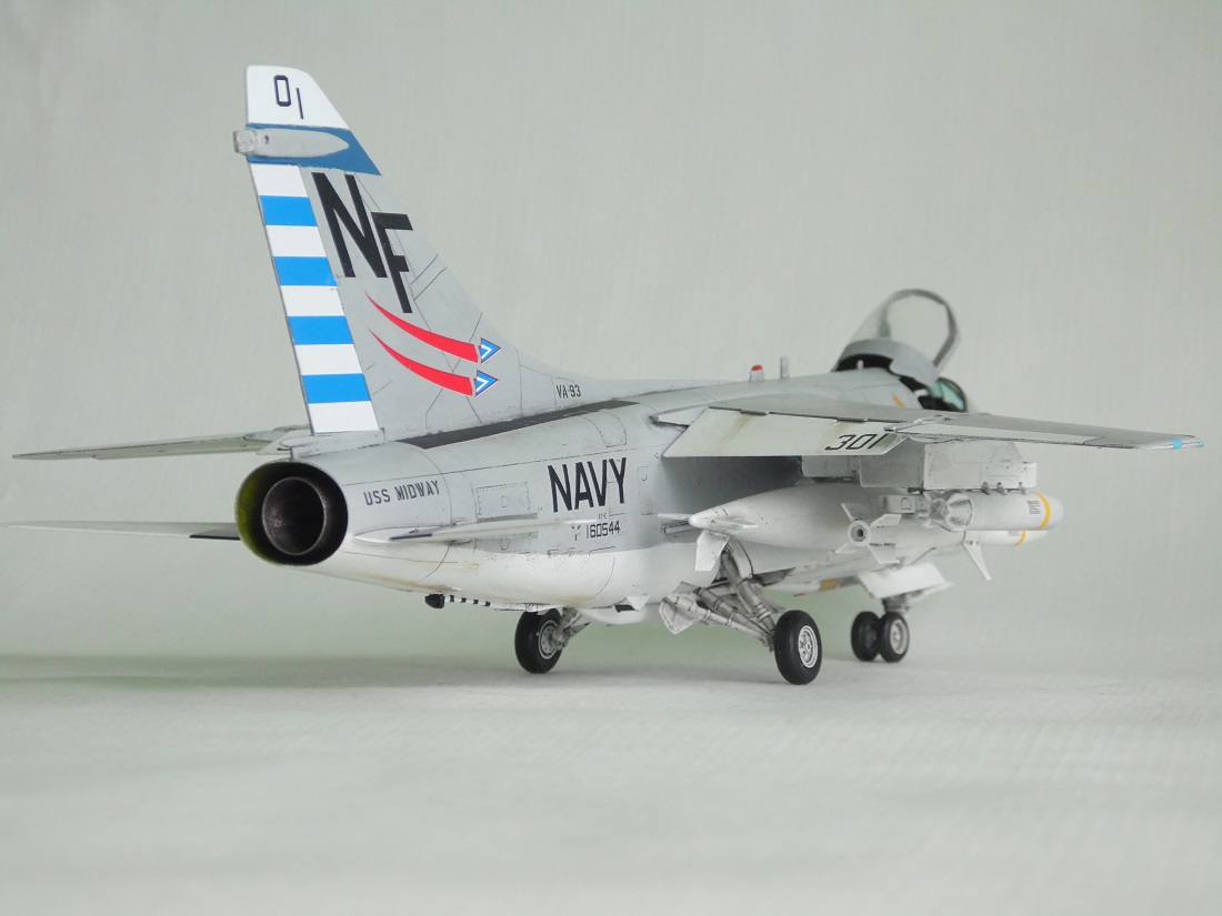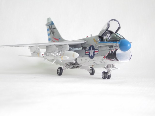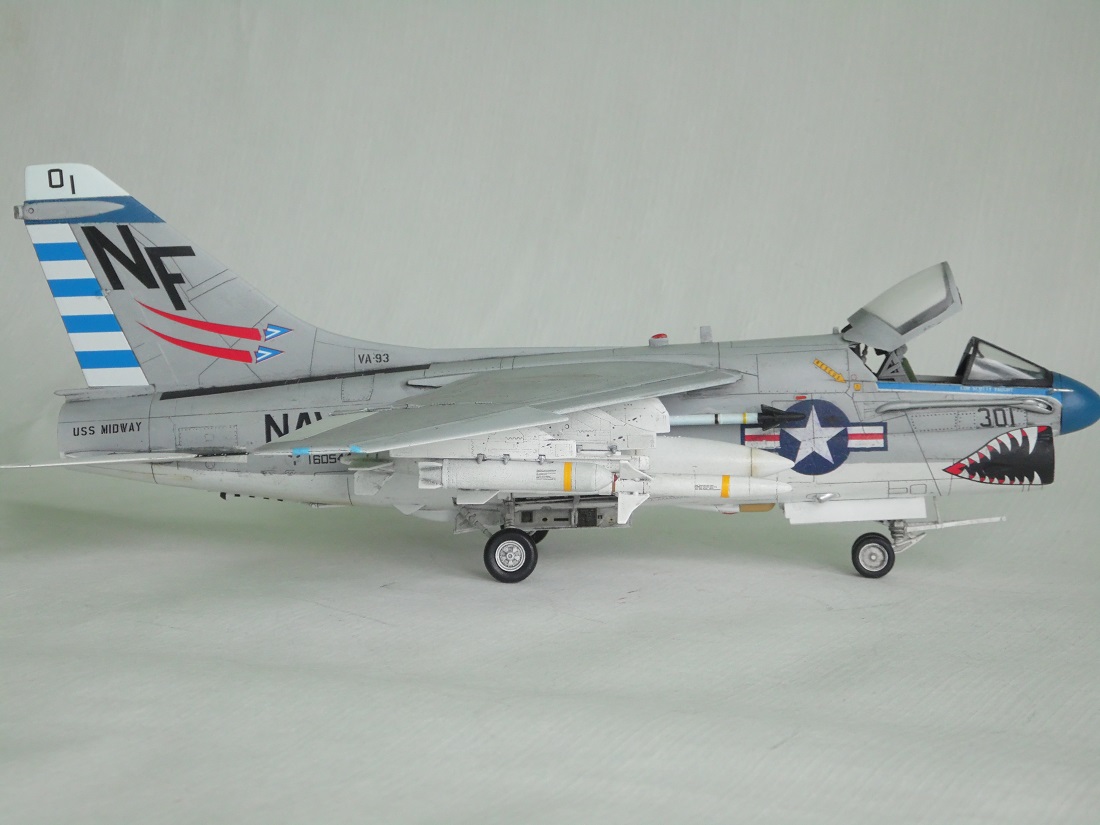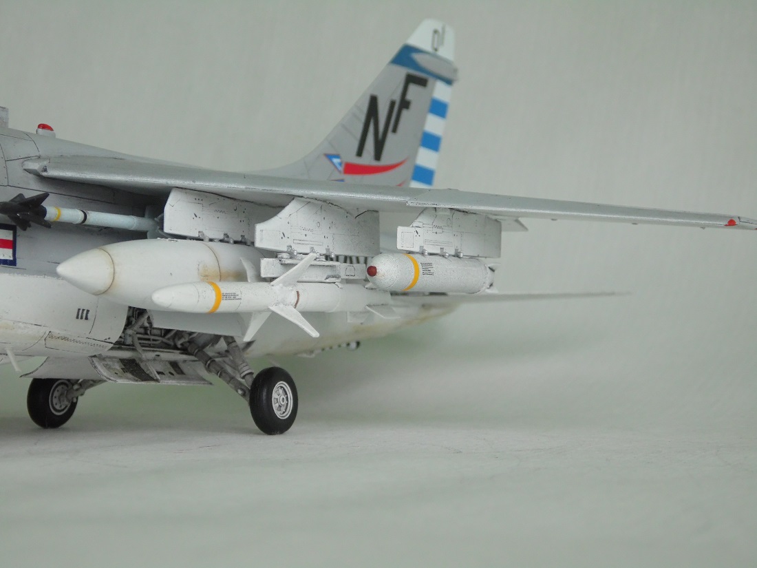 Наблюдал за постройкой, красивая получилась модель.Мне понравилась.Что касается придирок, не люблю придираться)))не благородное это дело, но остановлюсь на одном моменте.Дима!На A-7E Corsair II никогда не подвешивали ракеты AGM-88 HARM. Это противорадиолокационная ракета, самолеты этого типа их не могли носить.