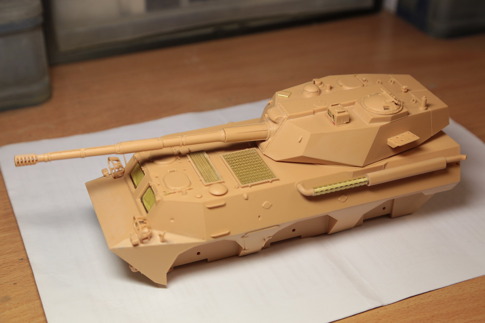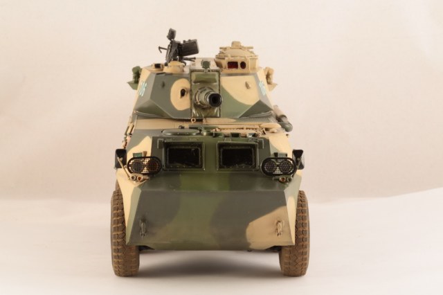 По модели: Собиралась легко, минимум шпаклевки. Сделал небольшие доработки: рассверлил глушитель, заменил прозрачный пластик на пленку на некоторых деталях, добавил проводку от фонаря, пулемет рядом с пушкой сделал из металлической трубки. Валков в сети не нашел, поэтому делал и красил по тем фото, которые смог найти (хотя вопросы остались). Красил аканом и ганзой, фильтры АК, смывка МиГ, финишное покрытие полуматовый лак от акана.