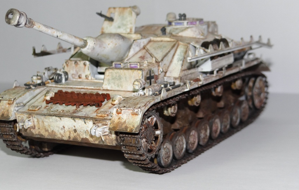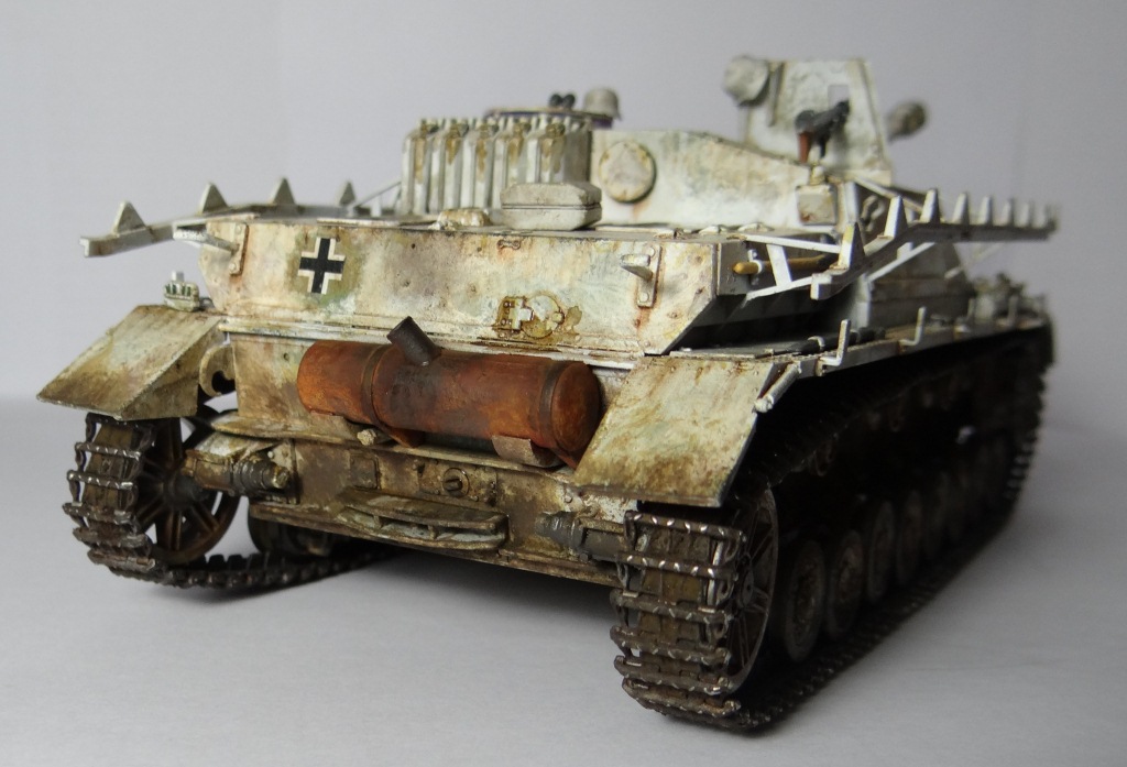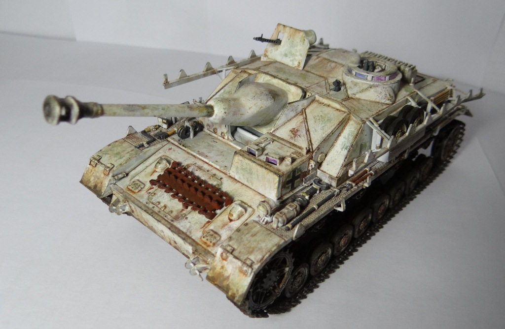 Представляю Вашему вниманию очередную модель. Собралась быстро, без особых проблем. Собиралась полностью из коробки. Решил покрасить в зимний камо-для разнообразия (попробовать хотелось). База-Ak Interactive. Белый камо-Vallejio. В дальнейшем для везеринга использовались краски Tamiya, Lifecolor, Ak Interactive. Траки от Sector35. В общем что получилось судить Вам. На все про все ушло где то 2-2,5 месяца. Хотелось бы узнать, есть ли положительный результат по сравнению с предыдущими экземплярами моих работ. Благодарю за внимание)