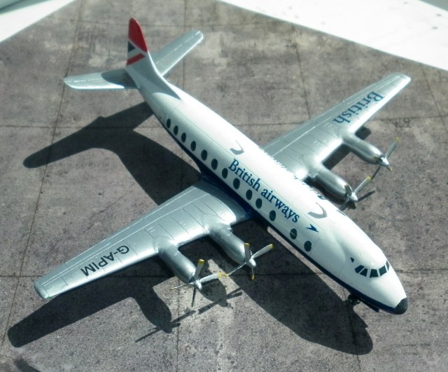Существуют в природе и литые модели. Целых две в 96-м: от FROG и Hawk. Последнюю потом еще делала Glenсoe. А вот фроговская в Союз или куда-либо еще не попала. Кстати, FROG выпускал свою модель в ливреях ВЕА и KLM.Известна литая модель в 1:100 от Faller.