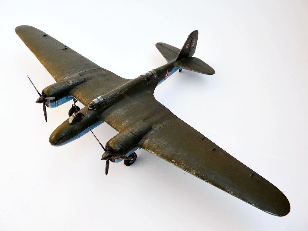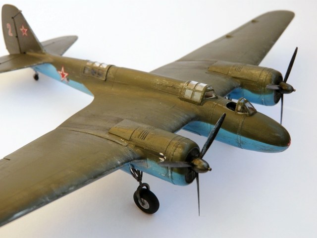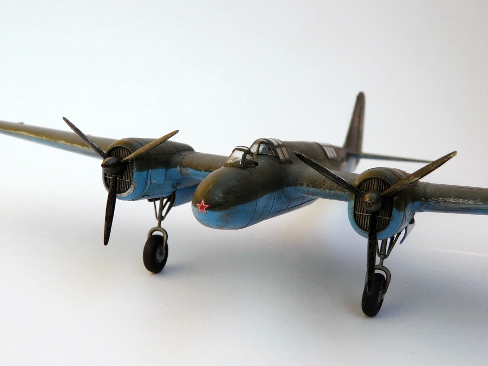 В двух словах расскажу о конверсии изначального пластика - новая носовая часть самодельная, из полистирола и шпаклевки. Во многих местах применил фольгу, получилось красиво и фактурно. Козырьки фонарей самодельные, "тянутые" из упаковочного пластика. Для задней турели использовал "ШКАС" от МиниВорд.