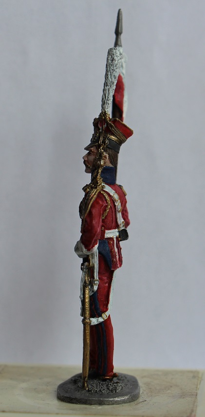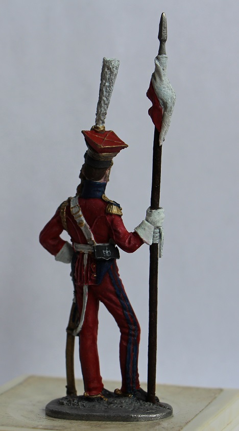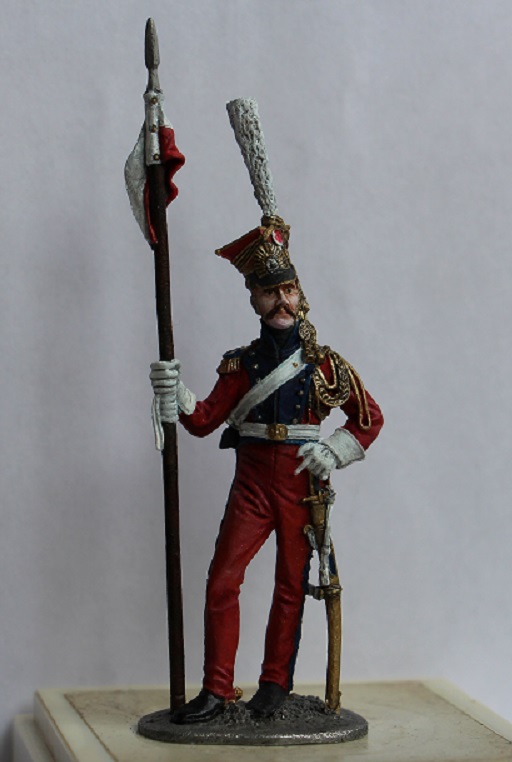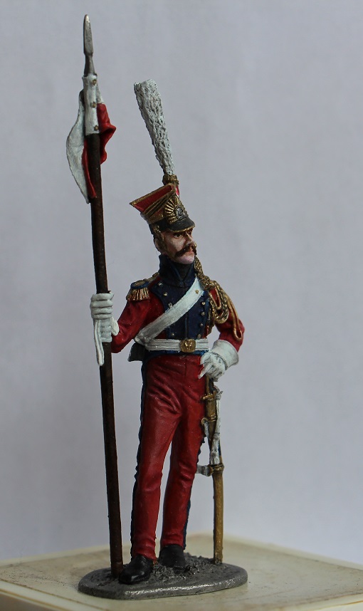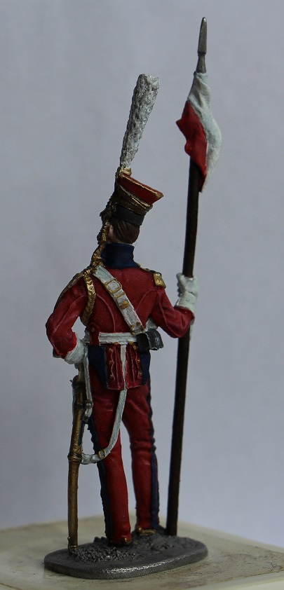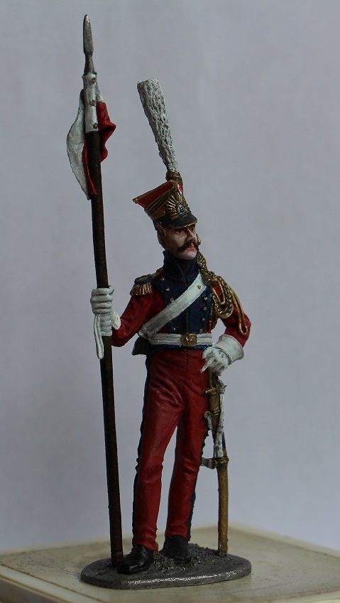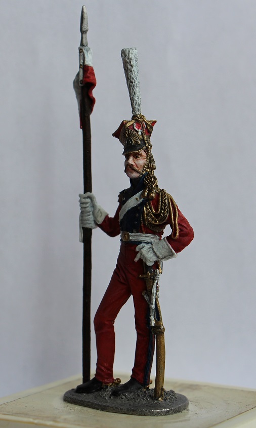 Проблема еще в том, что в скульптурной части фигурка не голландских (красных ) улан, а именно польских (синих). Если заинтересует - сравните , найдете разницу. Лет 7 назад сам напоролся на такую хрень - клапана карманов на брюках спереди, например, есть именно у красных, а на этой фигурке -нет вообще.... Да и вообще, фигурка старого ЕК.... Ну не знаю, кем надо быть, что бы ее сделать достойно... Одно лошадиное лицо чего стоит...