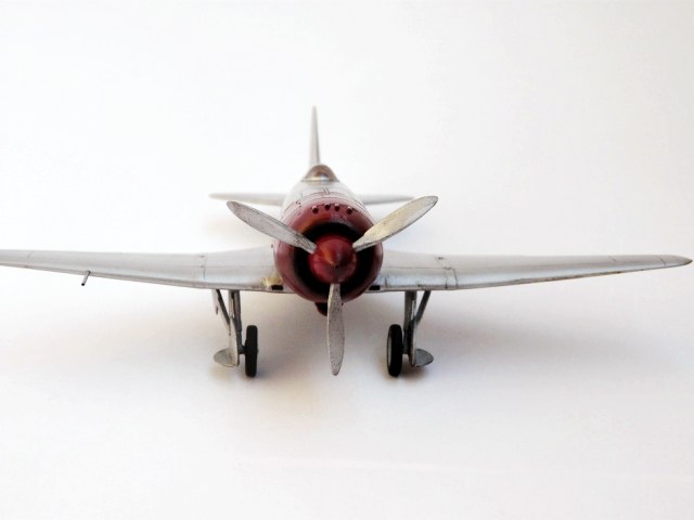 Фонарь получился мелким - пилот бы не влез через такой проем. Я так понял, Вы за исходник брали вариант с козырьком (на нем вопрос решался откидными дверцами)? Надо было расточить фюзеляж.