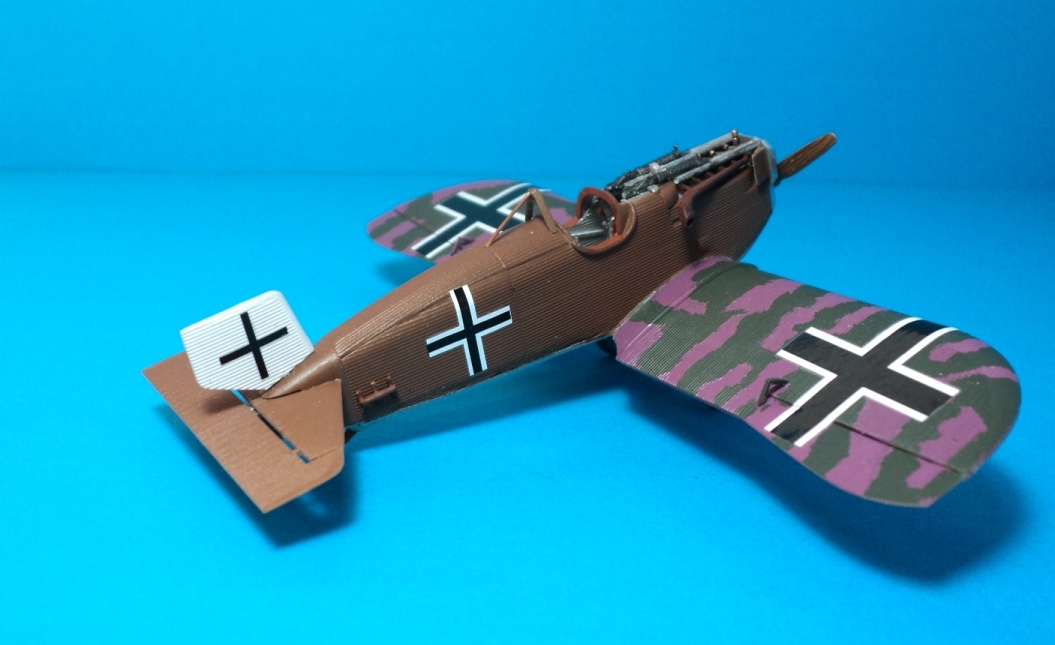 Деки традиционно хрупкие и дубовые, которые неудовлетворительно ложатся на профилированные крылья, но накрашивать кресты я не решился, так как существовал риск растекания краски (у некоторых моделистов такое случалось). Если не делать ошибок, можно получить весьма нетривиальную модель, и в будущем надеюсь собрать двухместный CLI, удлинённую версию DIи предсерийные J7 и J9.