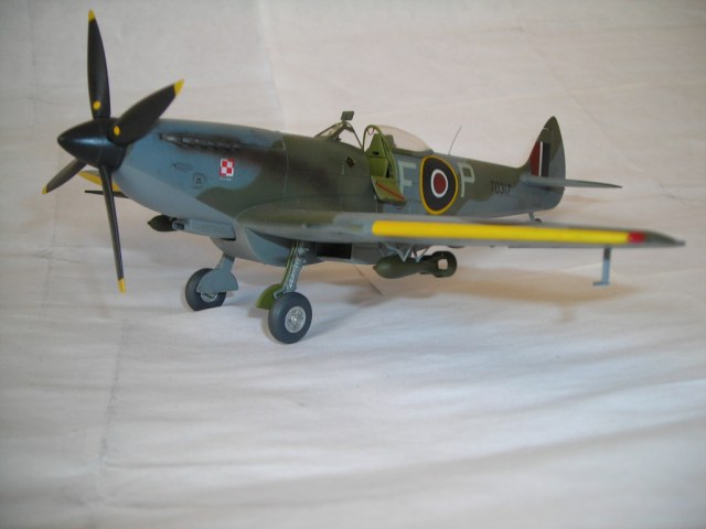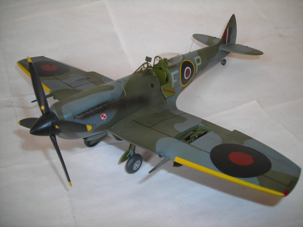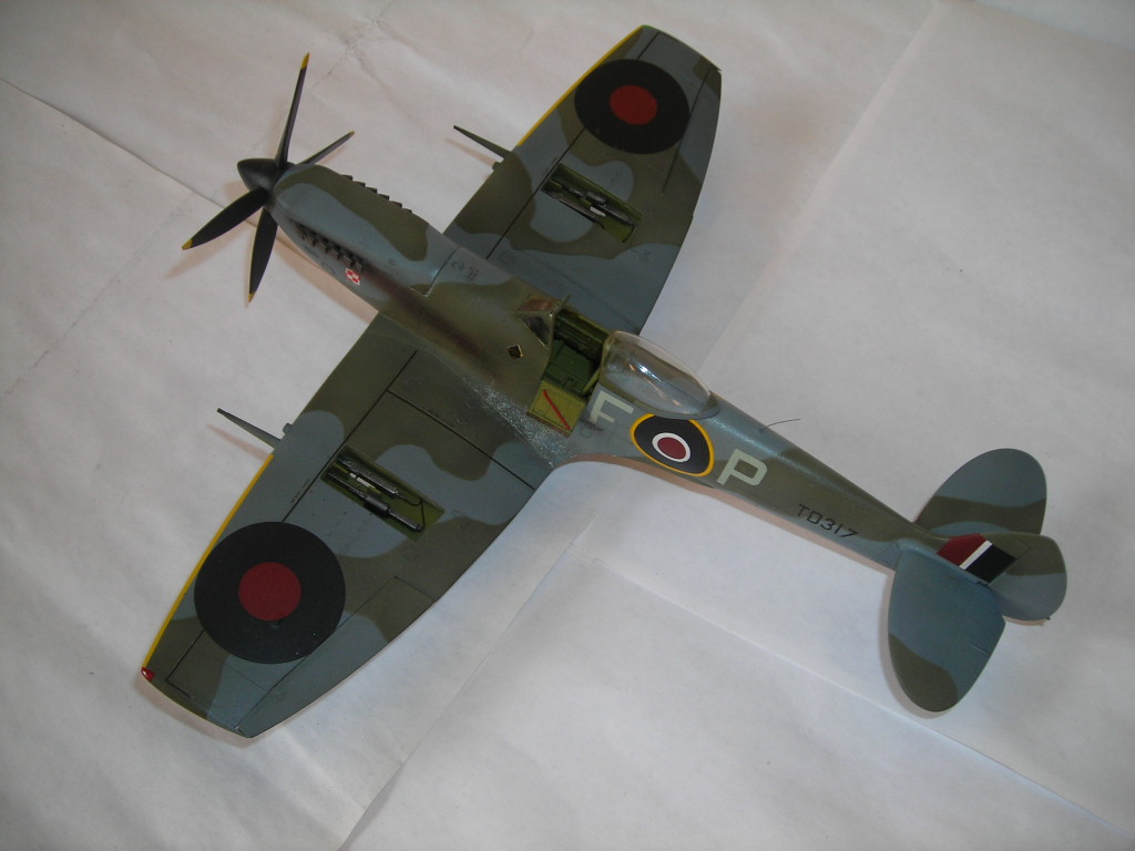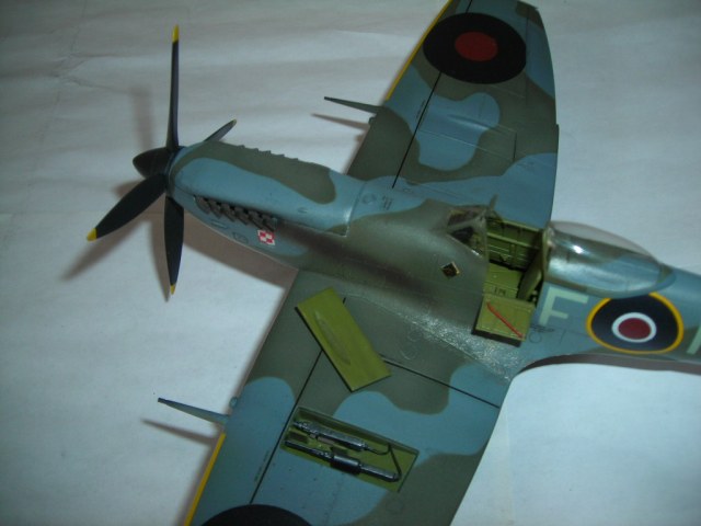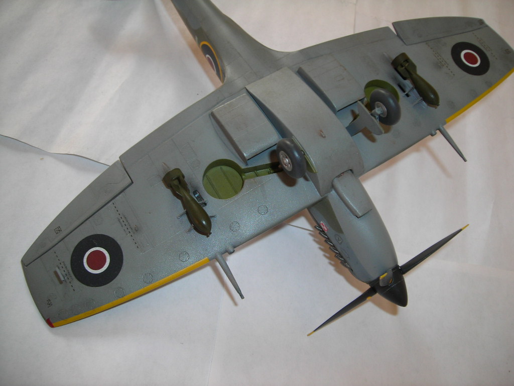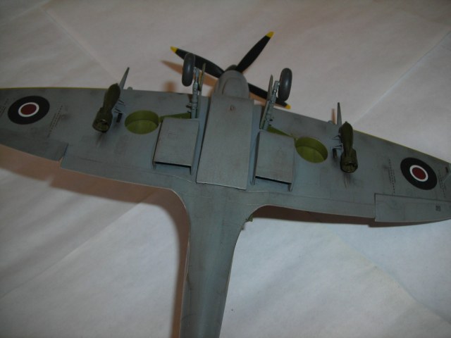 Кокпит вполне себе британский зеленый, кресло пилота только никогда не красили и оно имело коричневый цвет. А вот с нишами промашка в самом деле вышла. По остальному уже сказали. А, да мелко колиберные бомбы у англичан оливковыми небыли никогда. А в остальном вполне приличный спитфаер.