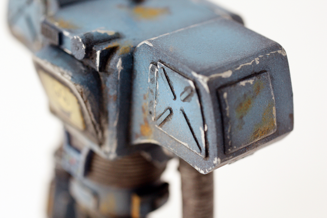 Вот и очередной персонаж из мира игры Fallout! На этот раз, "лицо" Fallout New Vegas - секьюритрон. При стройке, опирался на игровые скрин-шоты. Использовал в основном белый, листовой ПВХ разной толщины. Техника окраски БТТшная. акрилом Tamiya. Ну вот и всё =)