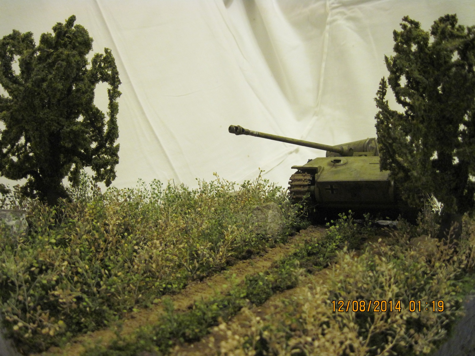 Работа большая и кропотливая проведена. Природа удалась хорошо, деревья тока не очень. Но Танчег вообще трудно разглядеть и понять что либо на предмет детализации. И белая простыня в виде фона не улучшает ситуацию.