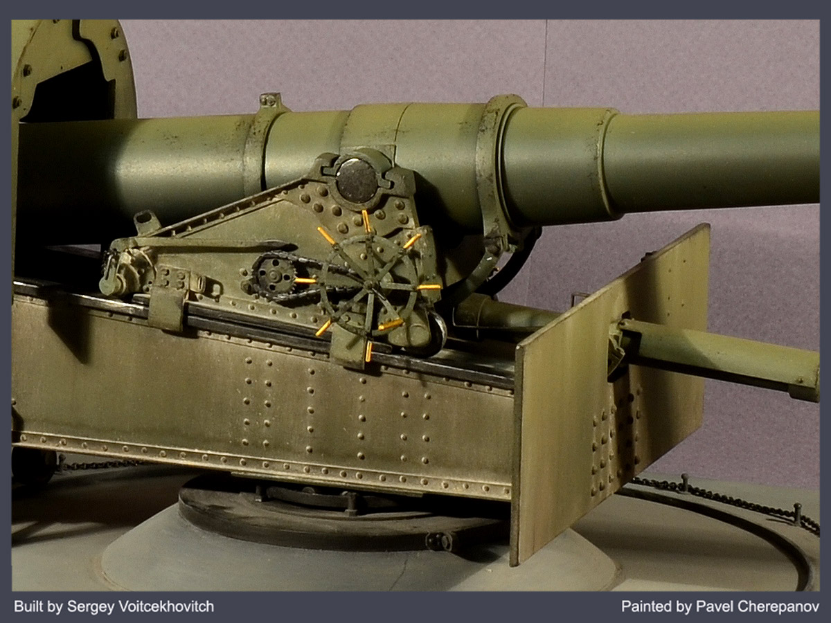 Уже четвертый совместный проект с известным мастером, крупнейшим специалистом по артиллерии Сергеем Васильевичем Войцеховичем. Как обычно, Сергей Васильевич поражает своими талантами, в очередной раз построив совершенно уникальную модель, полностью с нуля, в единственном экземпляре, а мне была доверена работа по окраске и тонировке.