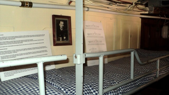 Дизеля может рабочие. Музейные работники изредка отдают команды о погружении, потом что-то булькает. Вот не пойму как туда может поместить 17-20 финнов, если коек человек на 8.