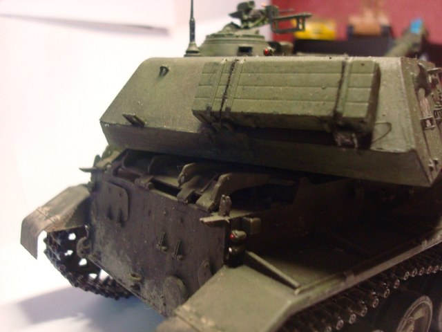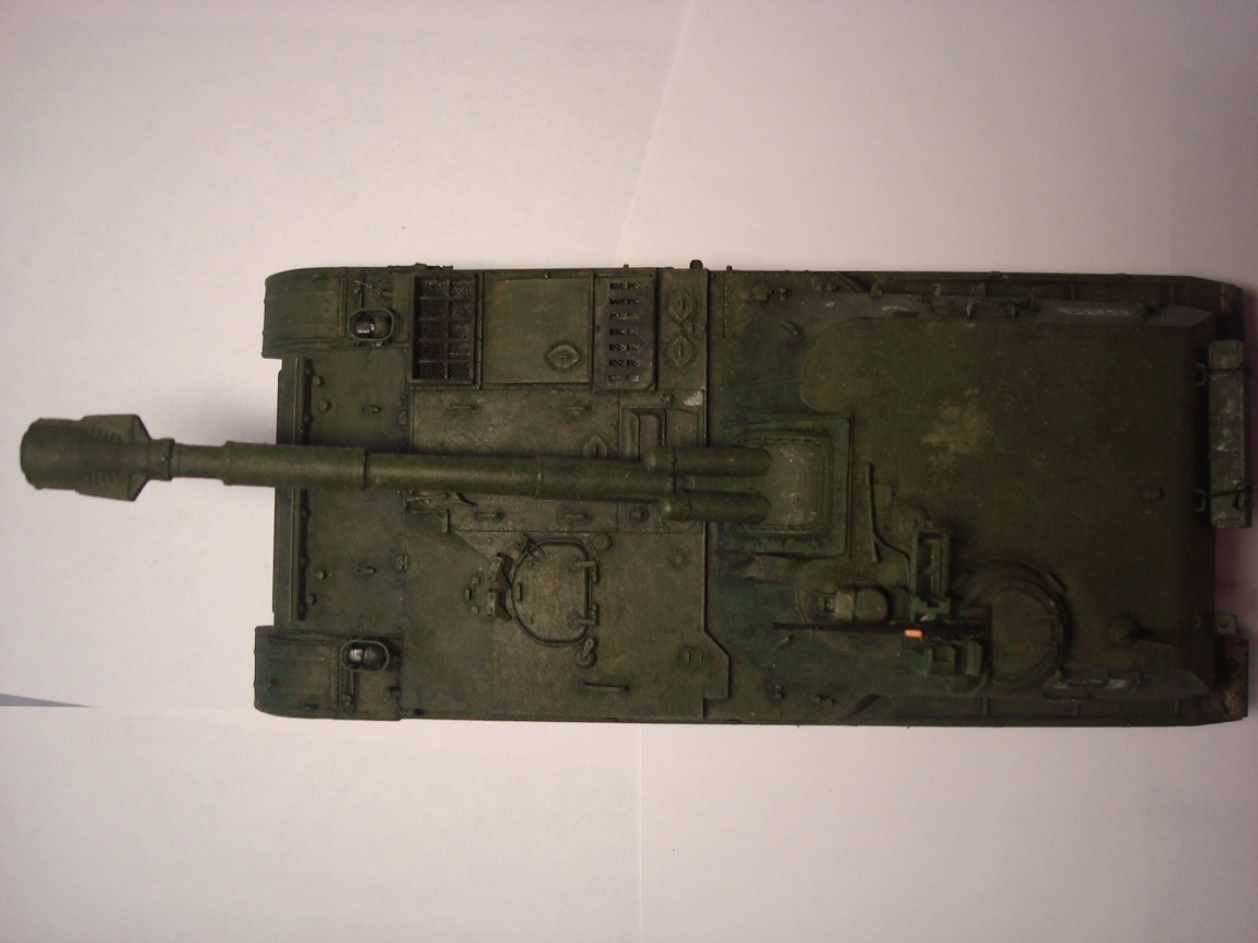 Красил в три слоя кисточкой, покрыв перед этим грунтовкой от тамии. Самое здоровское при сборке модели - это собирать траки. Они наборные и дали Мне отдохнуть от звездовских резиновых)) Смывка самодельная из звездовкого чёрного + тамиевский растворитель. Грязь Вилдер тёмно коричневая. Вот и все дела))