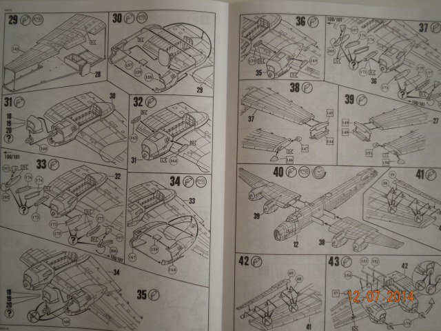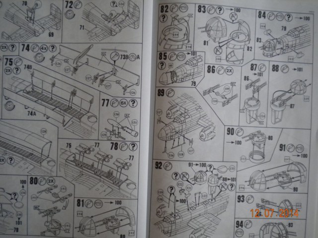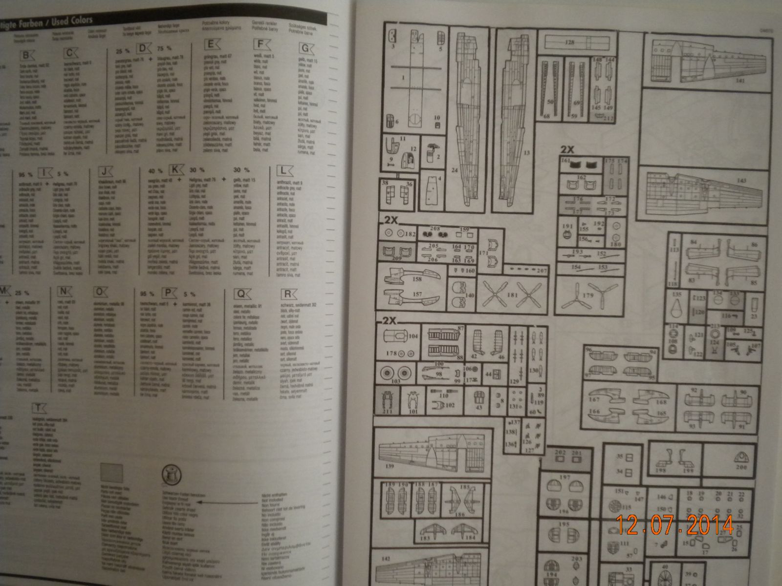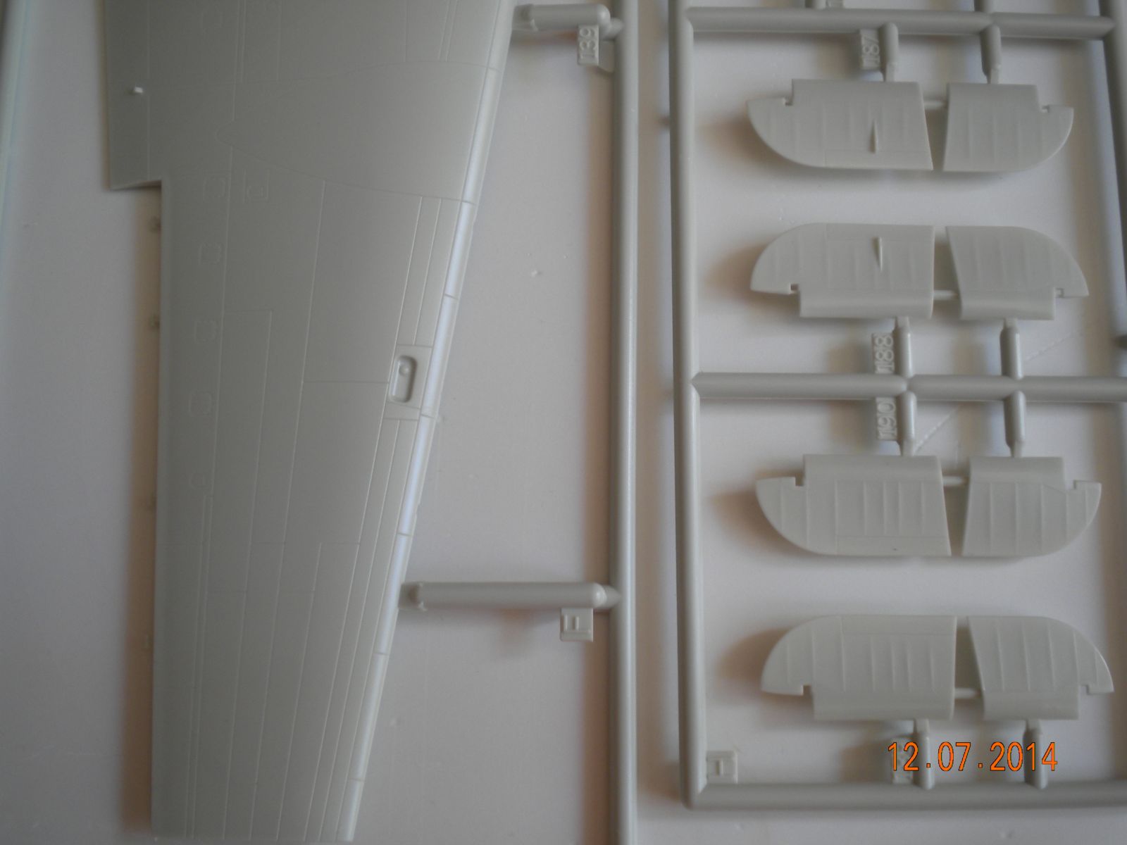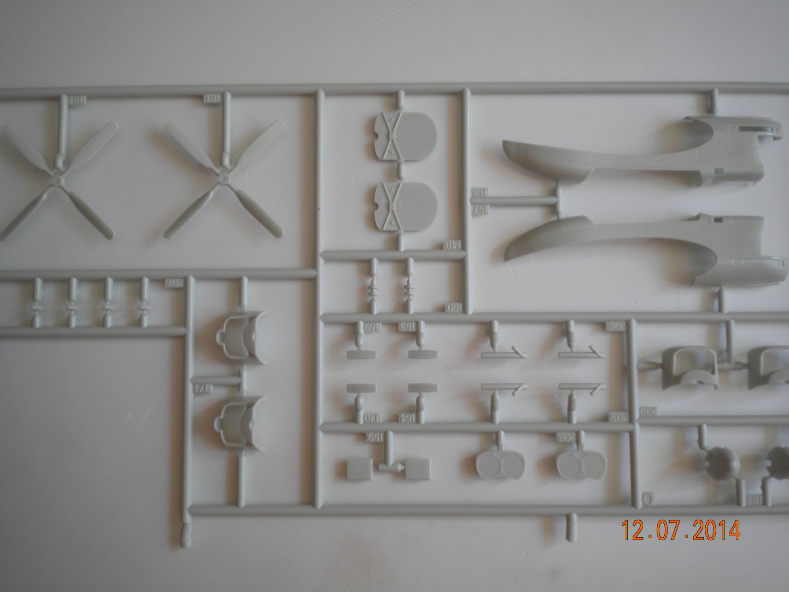 Модель разбита на 12 литников,пластик серого цвета,отливки неплохие,облоя я не заметил,есть пару утяжин но не критичных,расшивка внутренняя тончайшая,неплохо деталирован внутри.По желанию можно бомболюк открыть.Движки даны,вернее радиаторы в 3 вариантах.Патрупки.В целом набор не плохой.
