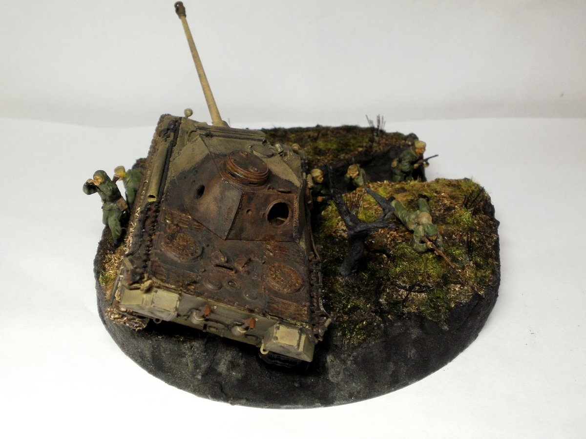 1."Пантера" "идеально" завалилась в окоп,не деформировав никак подвеску?Даже земля края окопа совсем ровная?И танк слишком чистый,для движения по полю.Гусеницы и подкрылки должны быть облеплены соломой,комками грязи и другим мусором...