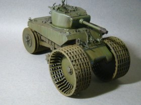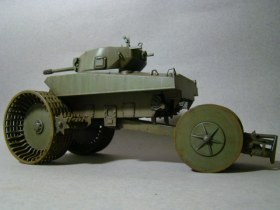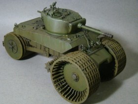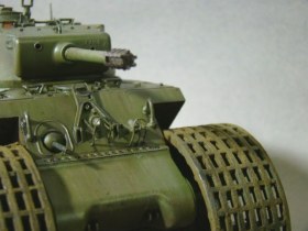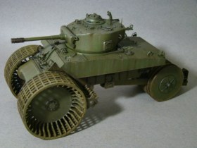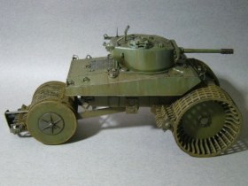 Отличная работа, тщательная реконструкция корпуса и ходовой... Но башня не имеет ничего общего со всеми известными фото прототипа -- ни по форме, ни по маске пушки. Просто другая модификация -- М4А2-76, вместо исходной М4А2