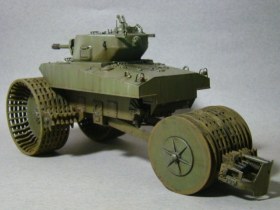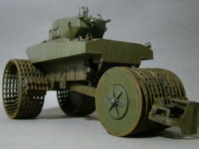 Минный трал Т10 был создан на основе среднего танка Sherman M4A2 и был предназначен для разминирования минных полей. Передние тяжелые катки приводились в движение с помощью ведущих звездочек. Передние и задний каток были оснащены специальными «звездочками-очистителями», которые в процессе движения трала очищали катки от грунта.