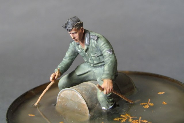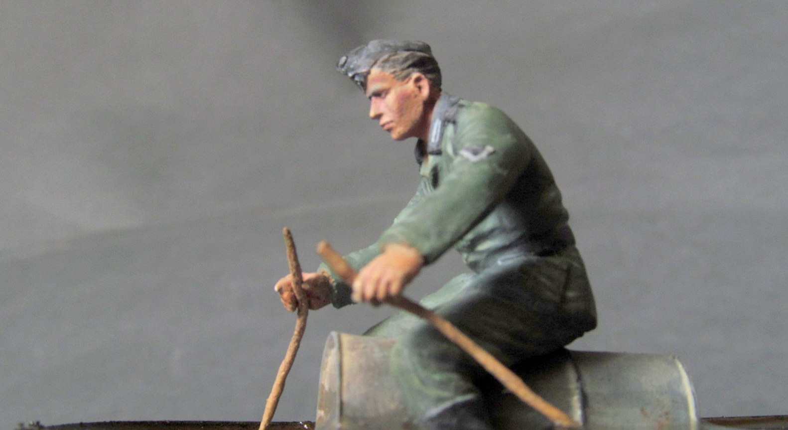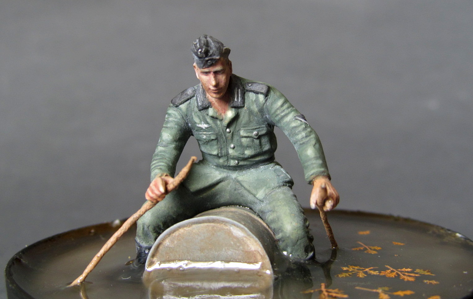 Я для полноты картины предложил бы сделать кусок берега, на ней пару смотрящих и ржущих немцев и фотографа. Тогда бы это был законченный сюжет.